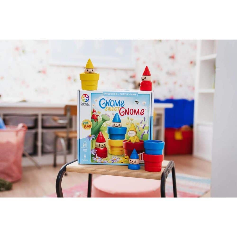 Puinen logiikkapeli lapsille. Kolme pikkuista puutarhatonttua on muuttanut puutarhaasi! Löydätkö niiden piilopaikat? Gnome Sweet Gnome sisältää 48 hauskaa haastetta.
