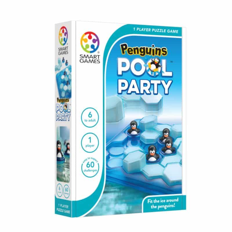 Pingviinit tahtovat pulahtaa virkistävään veteen! Aseta pingviinit haasteen osoittamille paikoille ja yritä saada pelin neljä jäälauttaa altaaseen ilman, että et peitä siellä polskivia pingviinejä. Penguins’ Pool Party -peli sisältää 60 viileää haastetta helposta erittäin vaikeaan. Kätevän säilytysratkaisun ansiosta pelin osat pysyvät tallella ja kulkevat helposti mukana vaikka matkalla.