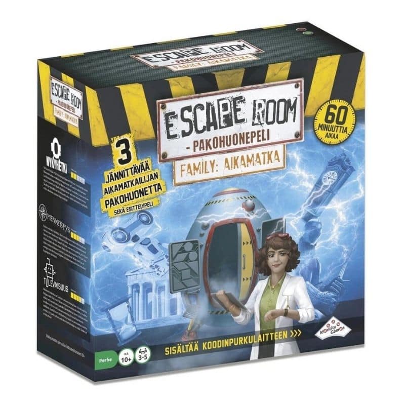 Ratkaise aikamatka-aiheisen pakohuonepelin vapauttava koodi ennen kuin aika loppuu. Pakkaus sisältää tehtävät ja vihjeet kolmeen jännittävään aikamatkailijan pakohuoneeseen, dekooderin ja pelisäännöt. 3-5 pelaajalle.