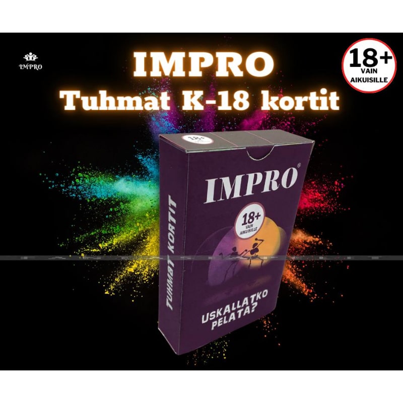 Impron Tuhmat K-18 kortit on kehitetty rajumman huumorin ystäville ja ne eivät todellakaan sovellu kukkahattutädeille. Korttien kysymykset saavat paatuneimmankin yksilön silmät pyörimään päässä ja pikkuhousut kostumaan. Tuhmat kortit soveltuvat erittäin hyvin ohjelmanumeroksi polttareihin, varpajaisiin, pikkujouluihin ja muihin vastaaviin kemuihin.