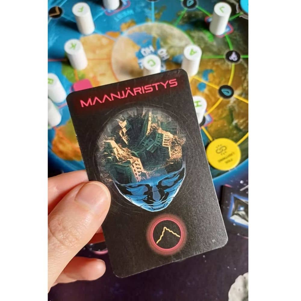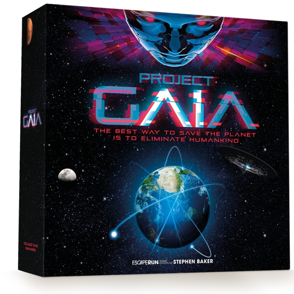 Project Gaia -lautapeli +12 v – Pääsetkö turvaan ajoissa? Maata puolustamaan suunniteltu tekoäly on tunnistanut planeetan ykkösviholliset – ihmiset! Pakene nokkelilla siirroilla ennen kuin jäät vangiksi. Enimmillään 6 pelaajan jännittävä strategiapeli. Luotu yhteistyössä Stephen Bakerin kanssa.