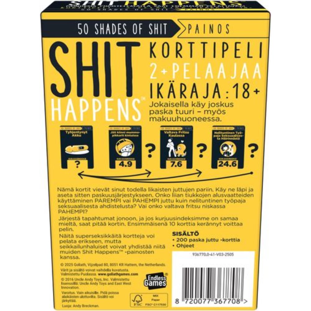 Valmistaudu nauramaan kanssapelaajillesi! Tämä 50 Shades Of Shit korttipeli tarjoaa 200 rohkeaa korttia hauskoihin hetkiin. 🎉