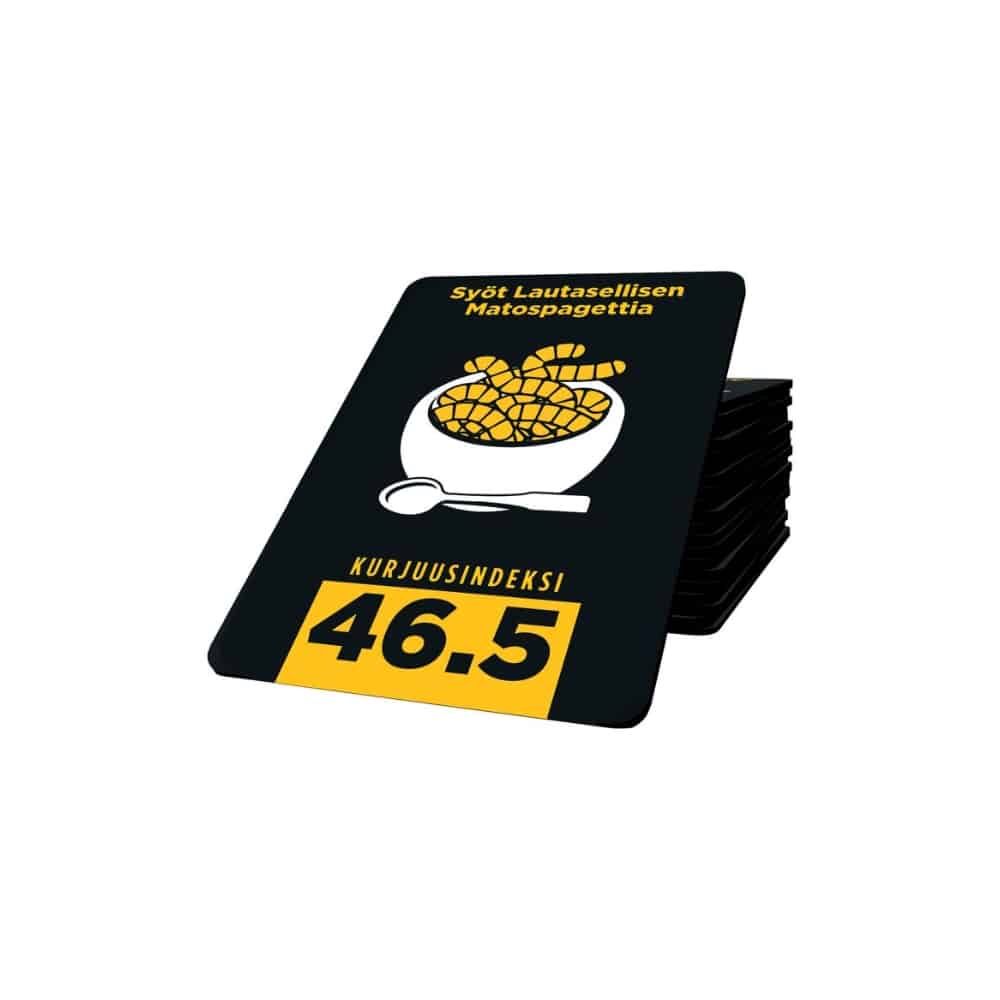 - Brutaalinhauska partypeli, jossa tosielämän karmeita tapahtumia pistetään oikeaan järjestykseen. Kumpi on kamalampaa, paperihaava vai huono parturointi? Sisältää 200+ tapahtumakorttia ja säännöt. Kahdelle tai useammalle pelaajalle. Suomenkielinen. Ikäsuositus: 16+ vuotta.