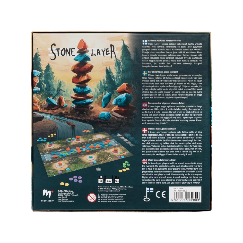 Stone Layer on hauska ja helposti opittava pinoamispeli, joka vaatii vakaata kättä ja hieman strategista ajattelua. Pelaajat rakentavat kuutta yhteistä kivipinoa nostamalla vuorollaan kivikortteja, joka määrää asetettavan kiven koon, mutta myös seuraavan pelaajan rakennuspaikan. Liian hankalasti asetettu kivi saattaa kostautua, jos onkin itse taas seuraava rakentaja. Jos pelaaja kaataa pinon, muut saavat pisteitä sen mukaan, kuinka monta kiveä he olivat pinoon asettaneet. Ensimmäisenä 10 pistettä kerännyt pelaaja voittaa pelin.
