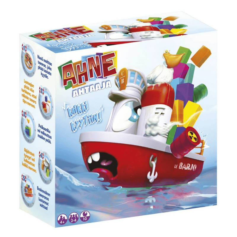 Ahne Ahtaaja -pelissä lastataan rahtilaivaa kiekon osoittamilla tavaroilla. Se, joka onnistuu laittamaan kaikki kontit ja tynnyrit alukseen on voittaja. Tämä rahtilaiva ei vain ole kovin vakaa, joten sinun pitää olla tarkkana.