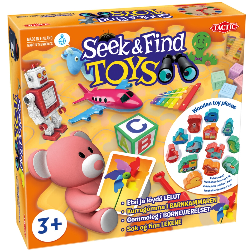 Tervetuloa leikkimään! Leikkihuone on hauskan leikin jäljiltä aivan mullin mallin. Jotta leikki voi jatkua, tarvitaan mestarietsijää! Mitä leluja sinä onnistut löytämään? Taitavin lelujen etsijä voittaa! Lelujen etsiminen kehittää lasten havainnointikykyä hauskalla ja viihdyttävällä tavalla! Paketti sisältää myös hauskan lisäpelin, jossa aikuinen piilottaa lelunappuloita pelihuoneeseen.