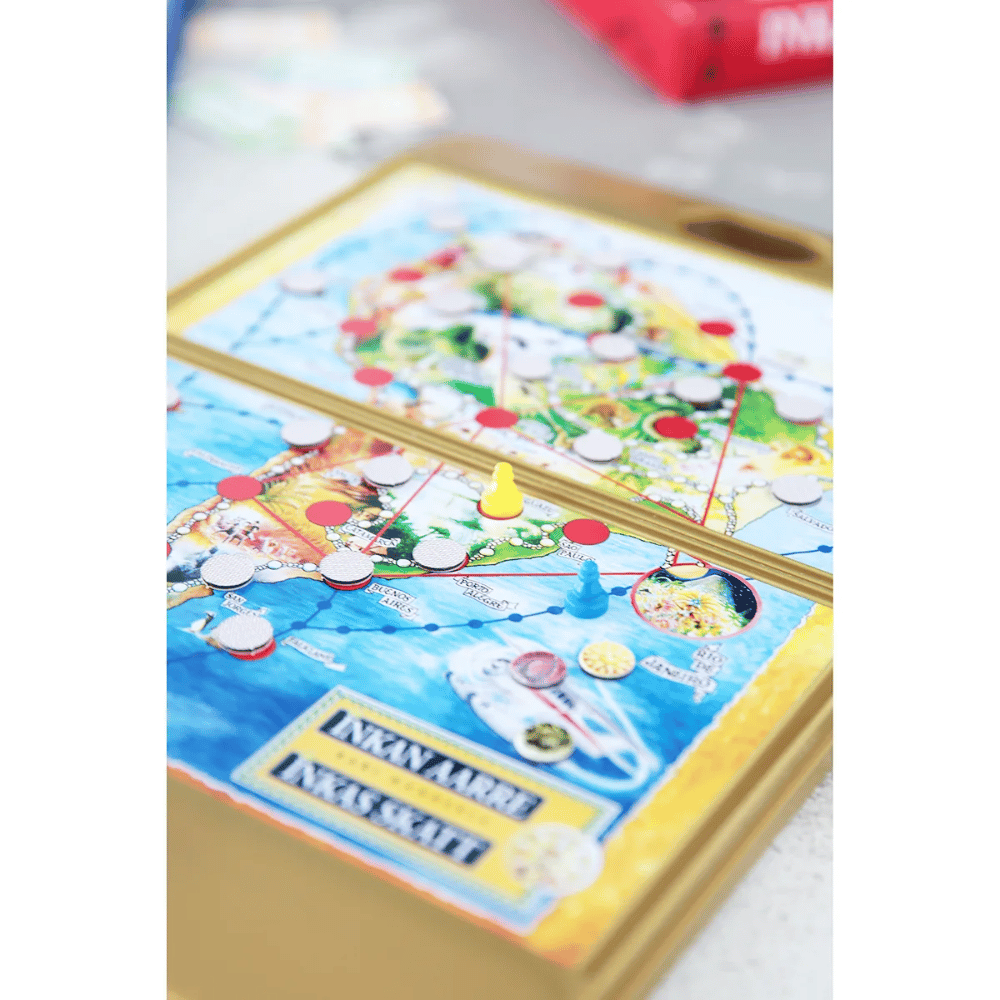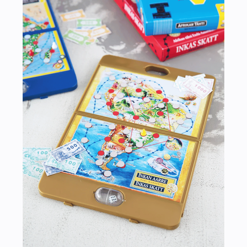 Inkan aarre Peliko -matkapeli on nyt täällä! Afrikan tähti on klassikko peli, jota kutsutaan nykyisin Inkan aarteeksi. Jos Afrikan tähti kuuluu perheiltojen suosikkeihin, kannattaa matkalle mukaan varata matkamallinen Inkan aarre. Matkaversiossa pelimerkit ja pelinappulat pysyvät laudalla magneettien avulla. Pelilaudan koko avattuna on 25,5 x 53,5 cm.
