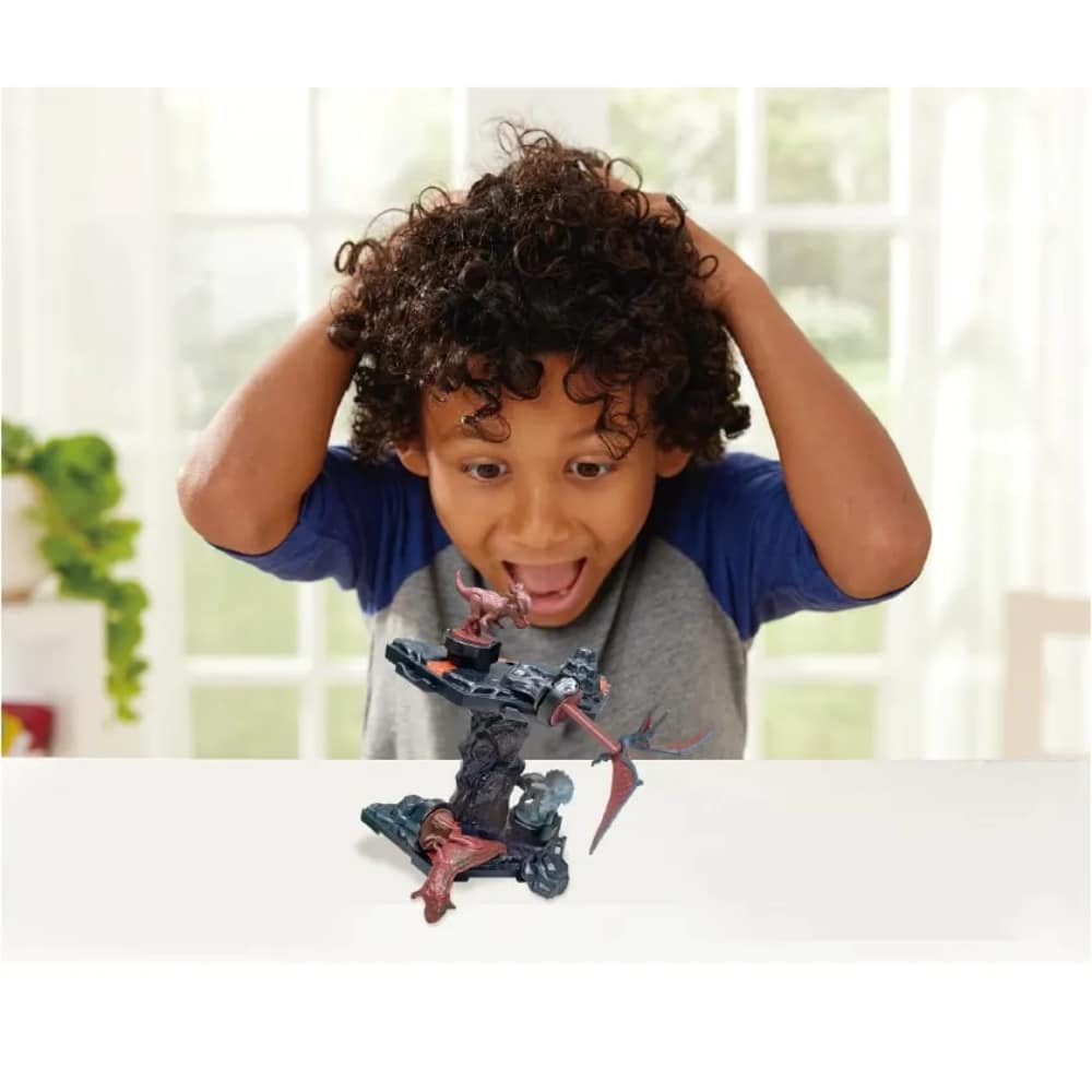 Heitä noppaa ja aseta dinosaurukset alustalle ohjeiden mukaisesti. Ole varovainen, sillä alusta ei ole tasainen. Viimeinen, jonka dinosaurukset ovat alustalla, voittaa!