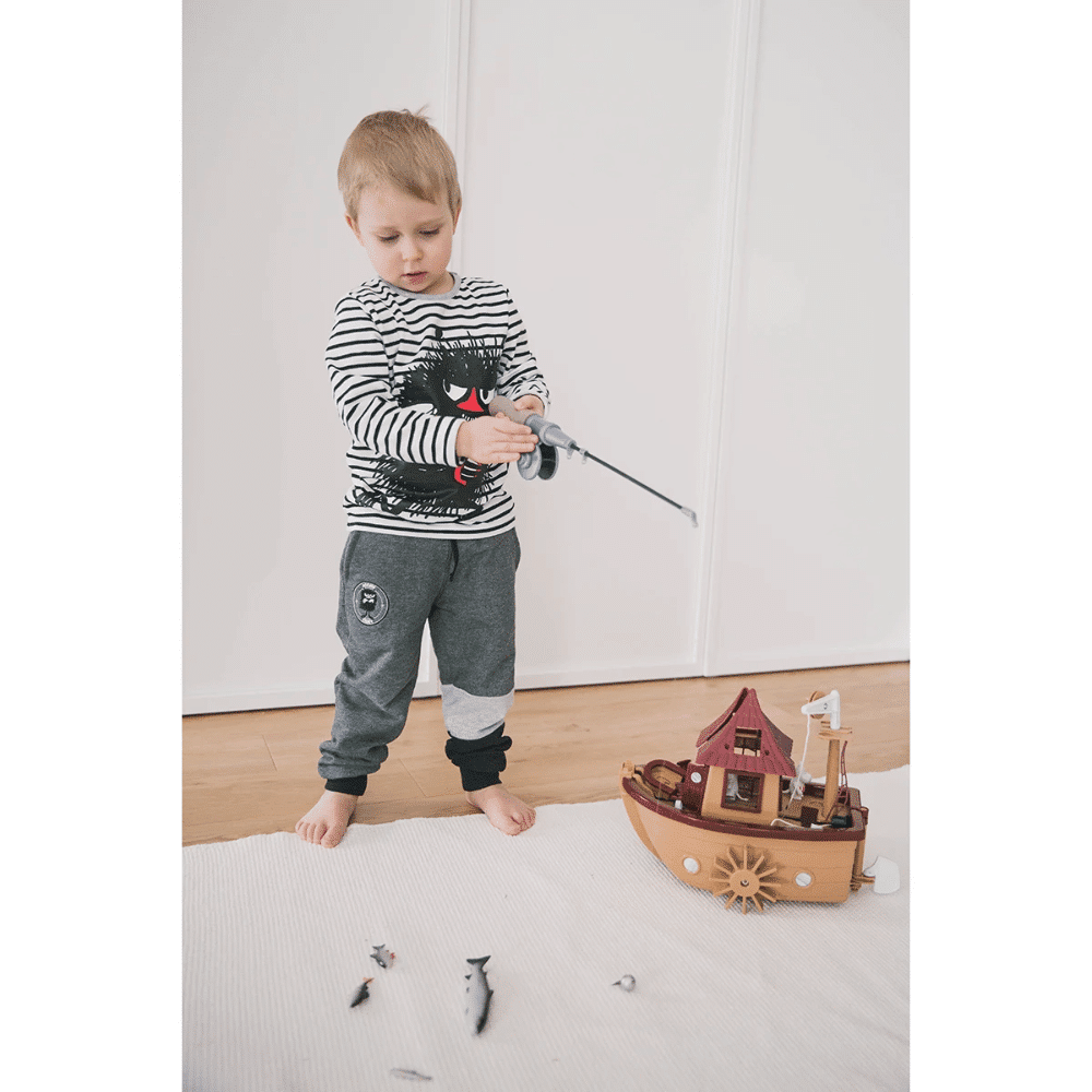 Kalastussetti Muumi Nuuskamuikkunen sisältää virvelin ja kuusi erikokoista muovikalaa. Kesäisin Muumilaaksossa asustava Nuuskamuikkunen on vaeltava kulkuri, joka hankkii itse omat ruokansa kalastamalla. Vaelluksilla Nuuskamuikkunen nauttii maisemista ja yksinolemisesta, sekä kokeilee uusissa paikoissa kalaonneaan. Nyt sinäkin voit kokeilla kalaonneasi Nuuskamuikkusen kalasetin avulla. Kalat tarttuvat virveliin magneetin avulla.