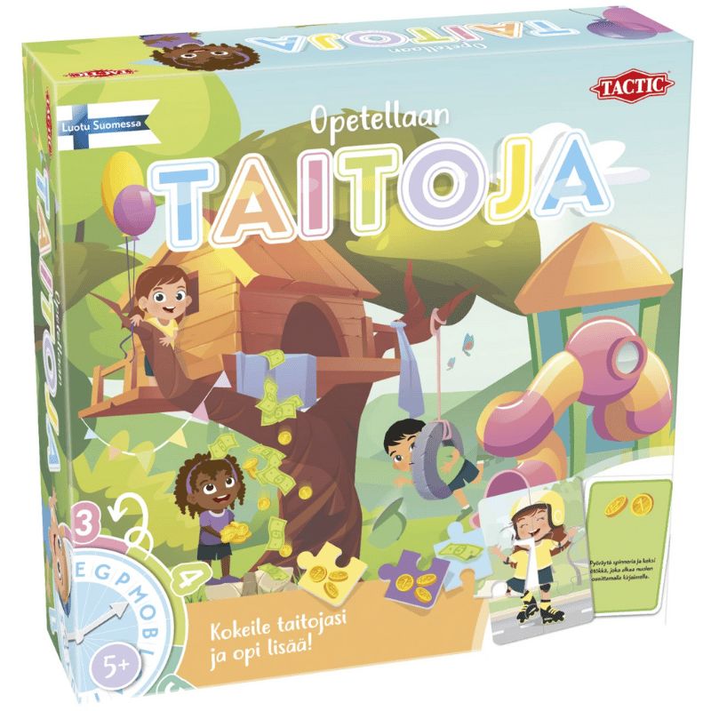 Osaatko nimetä kaksi punaista vihannesta tai hedelmää? Osaatko sanoa ”Vesihiisi sihisi hississä?” Lempeästi aivonystyröitä hierova lautapeli, jonka aikana lapsi kehittää hahmotuskykyään ja erilaisia taitoja huomaamattaan.