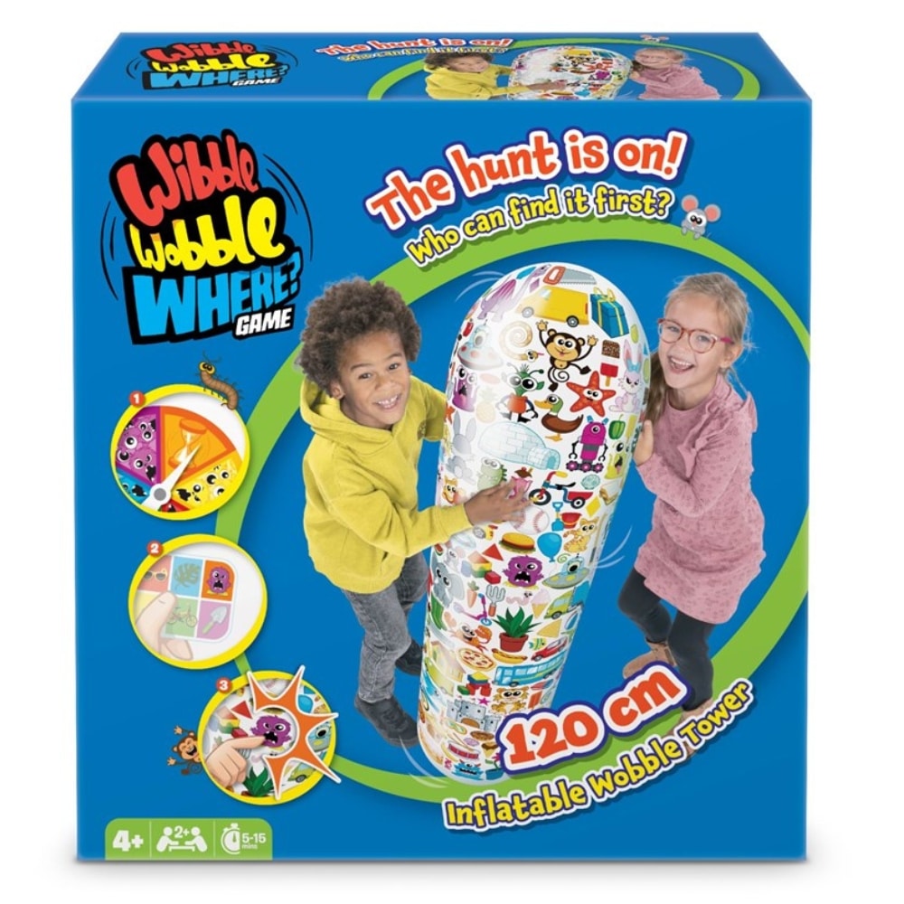 Wibble Wobble Where peli – fyysinen toimintapeli ja erittäin hauska peli! Kaikkien pelaajien on kerättävä 3 kuvakorttia etsimällä vastaavat kuvat jättiläisvaappulaitteesta. Ikäsuositus: 4+