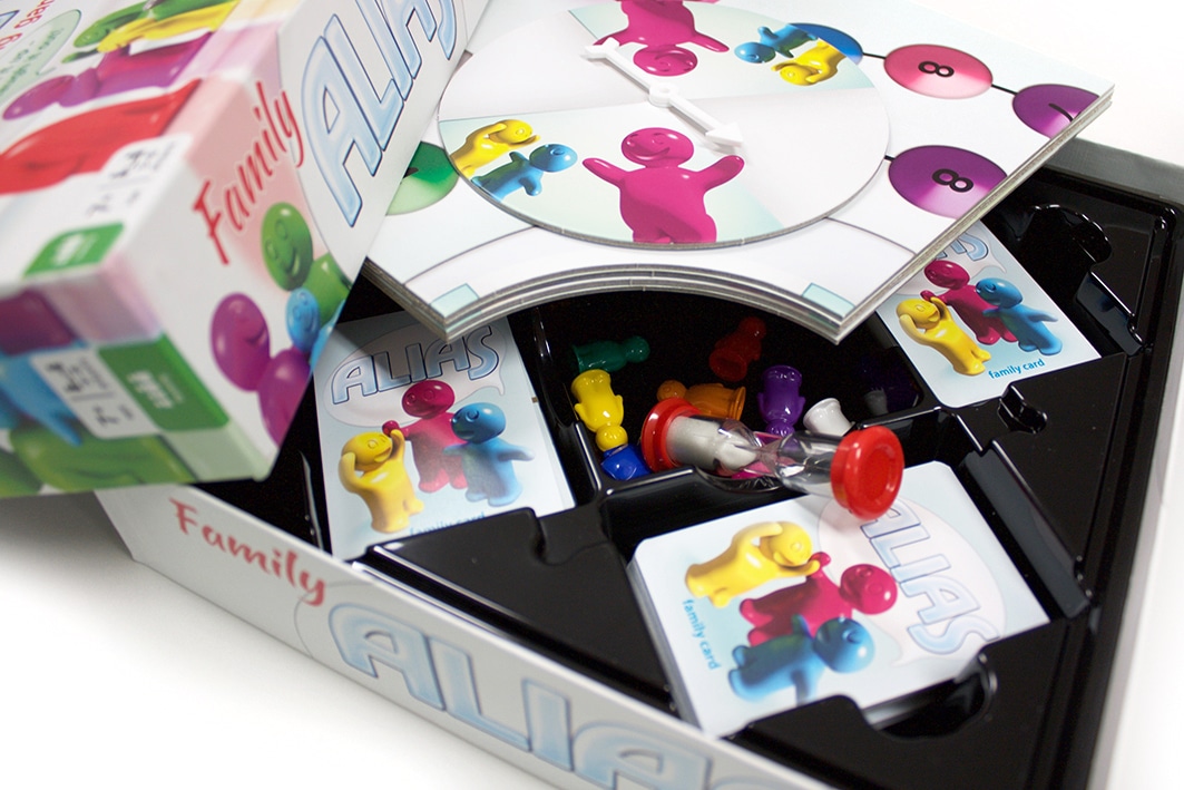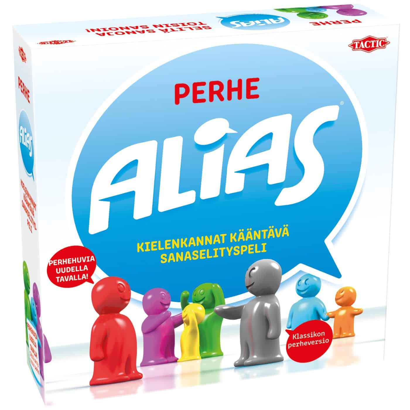 Perhehuvia uudella tavalla! Perhe-Alias on kielenkannat kääntävä sanaselityspeli koko perheelle. Pelaajat selittävät vuorotellen sanoja pareilleen käyttäen synonyymejä, vastakohtia ja vihjeitä. Parit vaihtuvat joka vuorolla.