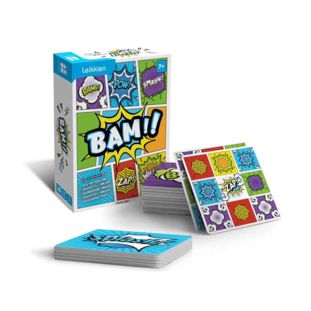 - Ota käyttöön ultranäkösi ja hypernopeutesi. Bam!! -peli Leikkien on hauska toiminnallinen peli, joka sopii mahtavasti vaikka perheen pelihetkiin. Pelissä pitää voittaa hankkimalla eroon kaikista korteista. Pitäkää hauskaa huutamalla supersankarihuutoja pelin äärellä.