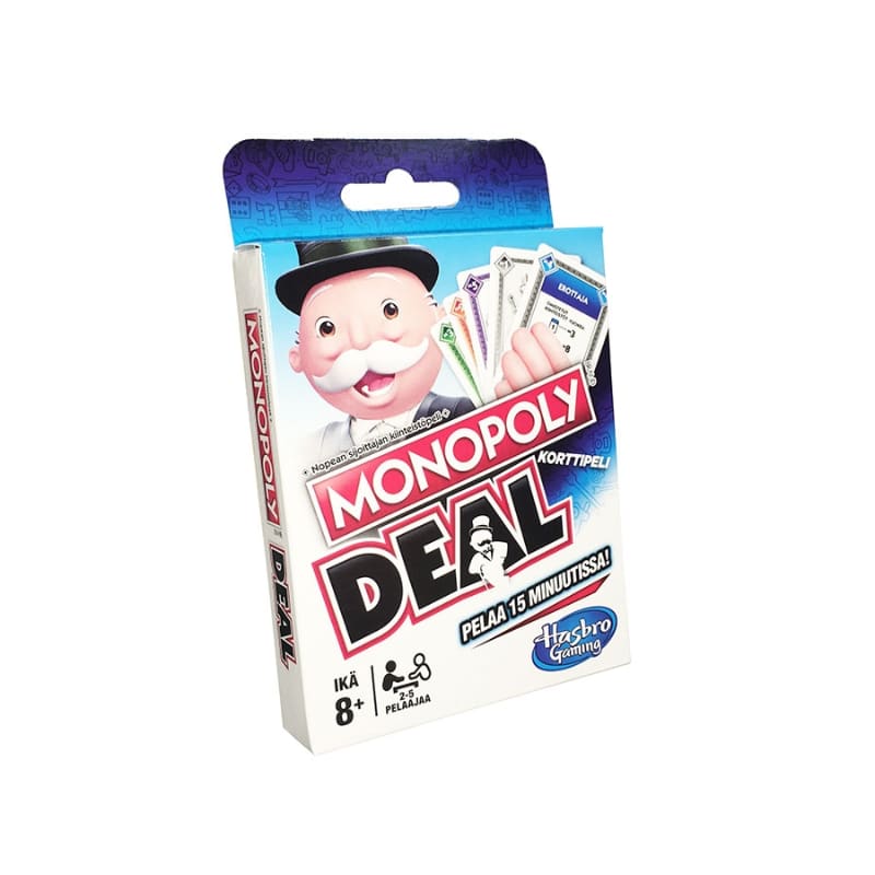Tuttu Monopoly-peli nyt vauhdikkaana ja viihdyttävänä korttipelinä! Käytä toimintakortteja velkojen perimiseen ja juonikkaiden sopimusten tekemiseen, kerää omaisuuskortteja, varasta korttisarjoja ja kerää ensimmäisenä kolme eriväristen kiinteistöjen sarjaa ja olet voittaja. Rakenna imperiumisi nopeammin kuin koskaan ennen. Sisältää 110 korttia ja peliohjeet.