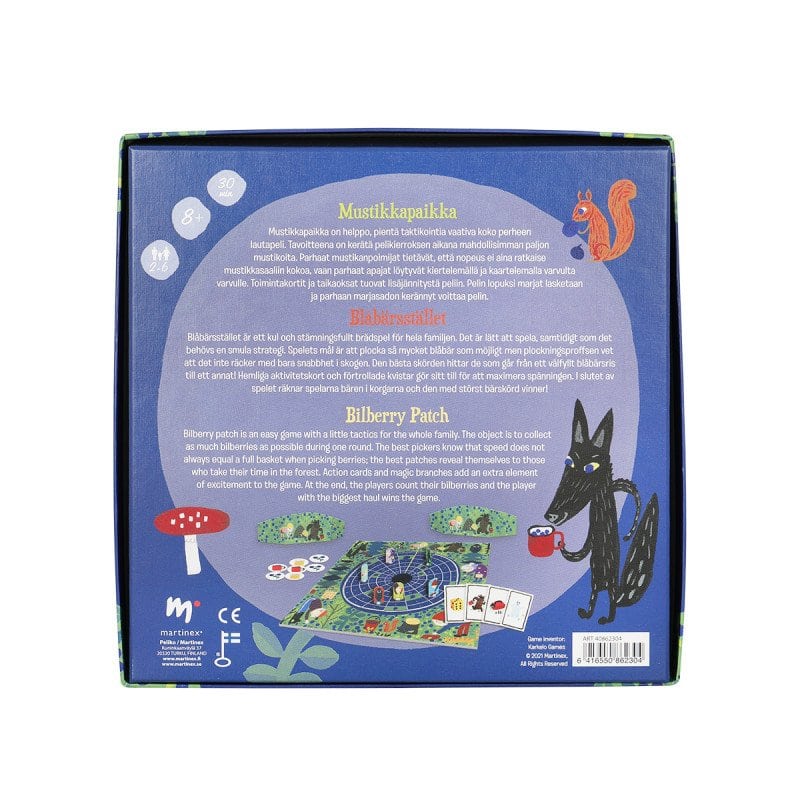 Mustikkapaikka on helppo koko perheen lautapeli, joka vaatii pientä taktikointia. Pelin tavoitteena on kerätä pelikierroksen aikana mahdollisimman paljon mustikoita. Parhaat mustikanpoimijat tietävät, että nopeus ei aina ratkaise mustikkasaaliin kokoa, vaan parhaat apajat löytyvät kiertelemällä ja kaartelemalla varvulta varvulle. Toimintakortit ja taikaoksat tuovat lisäjännitystä peliin. Parhaan marjasadon kerännyt voittaa pelin.