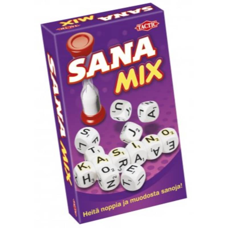 Sana Mix noppa lautapeli Tactic on täydellinen valinta lomamatkoille! Heitä nopat ja pyri voittamaan suurimmilla pisteillä! Ole nopea, sillä tiimalasin hiekka valuu kovaa vauhtia! Suurimman kokonaispistemäärän kerännyt pelaaja voittaa! Kätevä ja hauska lautapeli, joka on loistavaa ajanvietettä matkoille, junaan, autoon ja kesämökille!