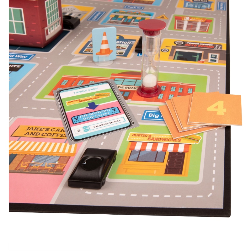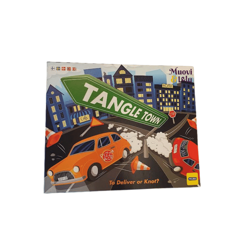 Kilpailuhenkinen kuriiripalvelu Tangle Dash hakee uusia ruokalähttejä – ja sait paikan! Hyppää autoosi laittamalla sormi sen päälle, katso keikan nouto- ja toimituspaikka ja toimita murkinat, tietysti irrottamatta sormiotettasi autosta ja kaatamatta paraatipaikalla seisovaa kaupungintalon kellotornia. Helppoa? Mahdollisesti, jos Tangle Townin ruuhkainen keskusta ei olisi niin täynnä autoja ja muiden pelaajien käsiä, tai jos kaupungintalo olisi rakennettu hieman vakaammaksi… Pelatkaa yhteistyöpelinä vältellen kellotornin kaatumista tai yksilöpelinä, jossa paras ruokalähetti voittaa. Hupaisa perhepeli täynnä solmuja, huumoria, vauhtia ja yllättäviä tilanteita!