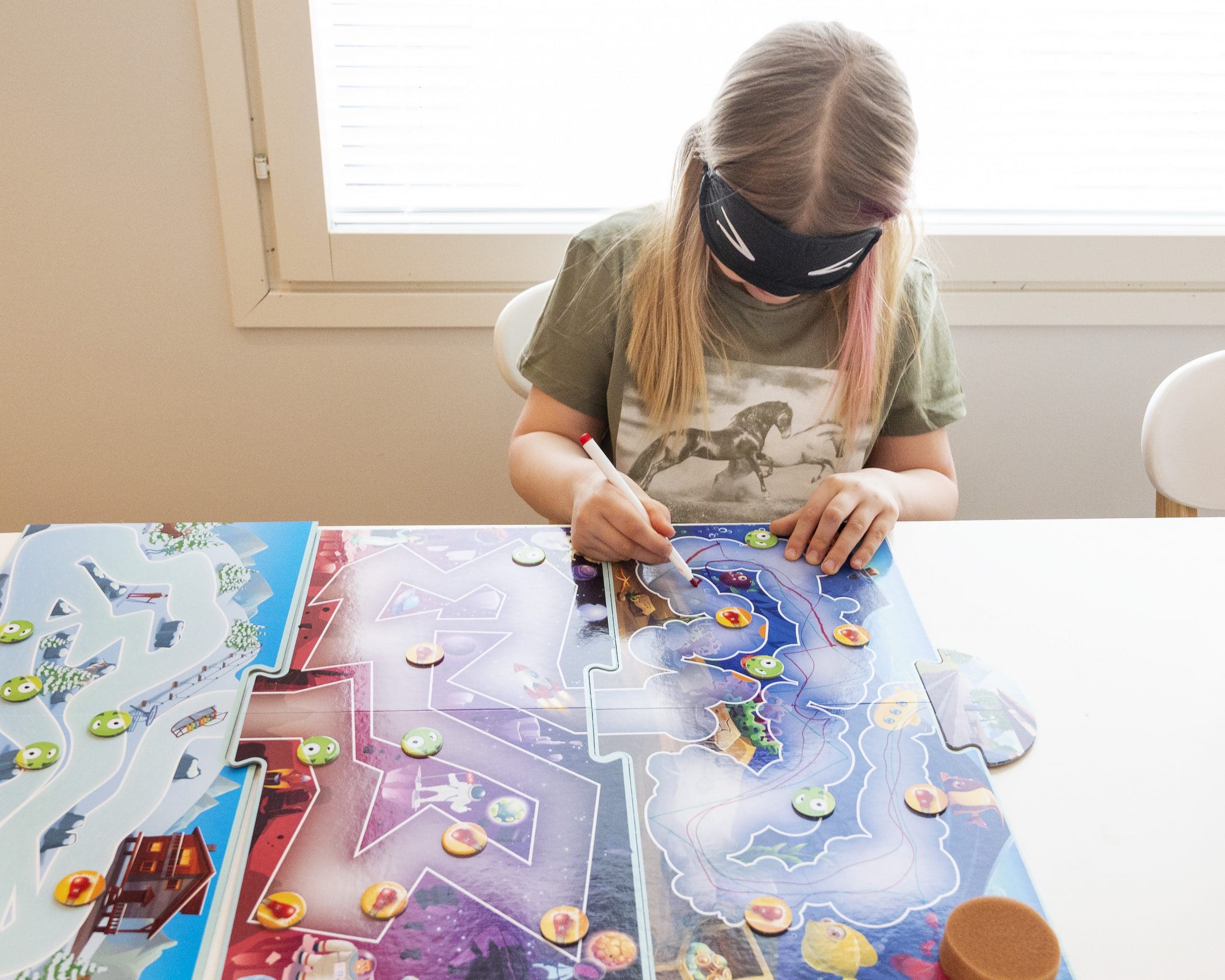 Oletko koskaan yrittänyt piirtää sokkona? Se on nimittäin yhtä hulvatonta kuin miltä näyttää! Amazing Maze -pelissä on kuusi erilaista sokkelolautaa, ja sinun tehtäväsi on piirtää viivaa niiden alusta loppuun asti. Et kuitenkaan saa törmäillä sokkelon seiniin, tai pierutyynyn töräys keskeyttää matkasi! Parhaiten sokkona piirtävä pelaaja palkitaan!