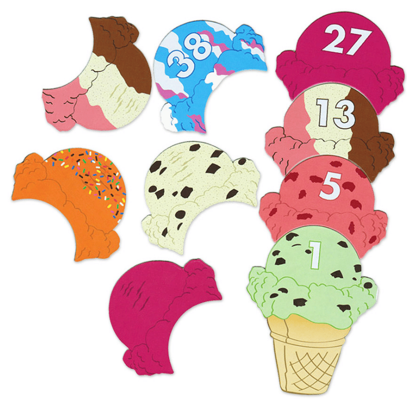 - 48 erilaista pahvista jäätelöpalloa, joissa numerot 2-49