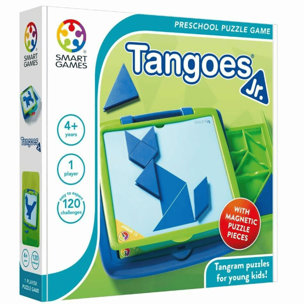 SmartGames Tangoes Junior pulmapeli on perinteinen tangram-pulmapalapeli, joka koostuu seitsemästä palasta. Muodosta paloista erilaisia hahmoja ja kuvioita.