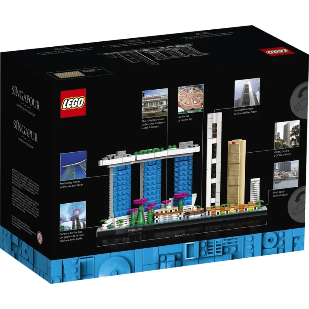 LEGO Architecture 21057 Singapore – Lennähdä yhteen maailman upeimmista kaupungeista syventyessäsi LEGO® Architecture Skyline keräilysarjan Singapore settiin (21057) – passia ei tarvita. Nauti laatuajasta ja rakenna Marina Bay Sands, OCBC Centre ‑pilvenpiirtäjä, One Raffles Place, Lau Pa Sat -ruokatori, The Fullerton Hotel Singapore ja Gardens by the Bay ‑puiston Supertree Grove. Lisää Singaporejoen LEGO osat ja puut, jotka täydentävät tähän mennessä suurimman ja monipuolisimman LEGO kaupunkisiluetin.