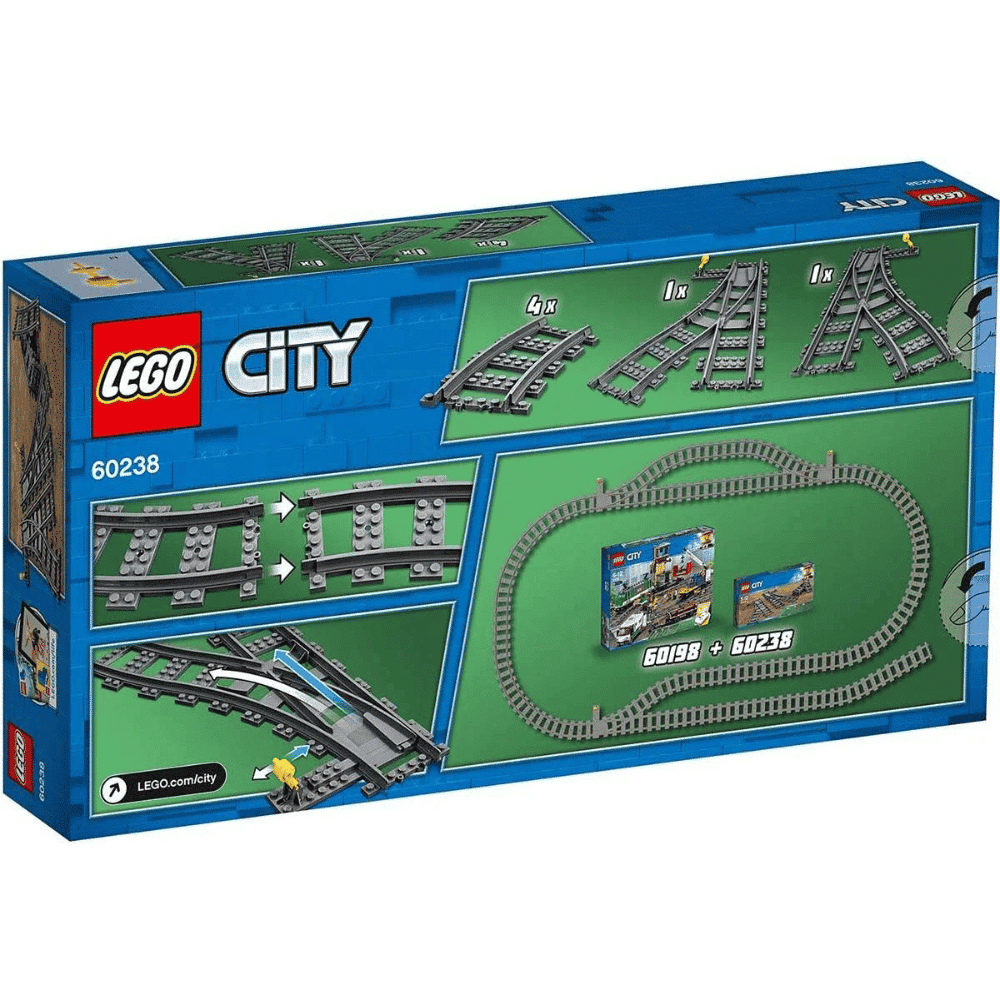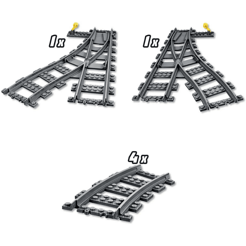Vaihtoraiteet on täydellinen lisäosa jokaiselle LEGO-junarakentajalle. Sen avulla voit ohjata junan kulkemaan eri suuntiin ja rakentaa monipuolisempia ratalinjoja. Osat sopivat saumattomasti yhteen muiden LEGO City -raiteiden kanssa, ja niitä voidaan käyttää sekä uusissa että aiemmissa radoissa.
