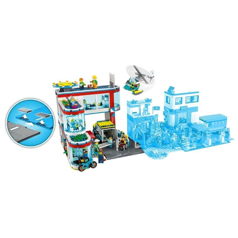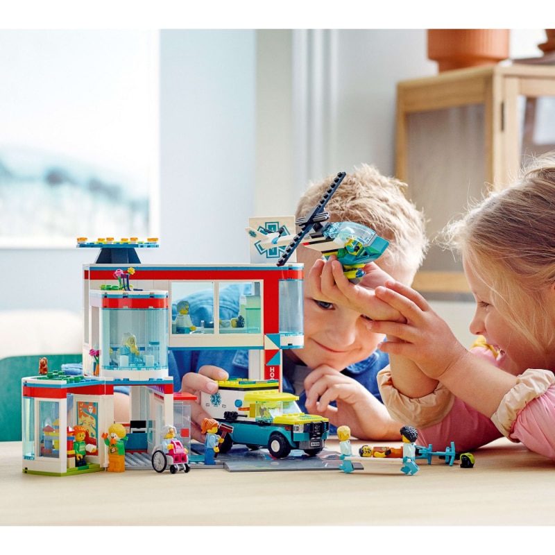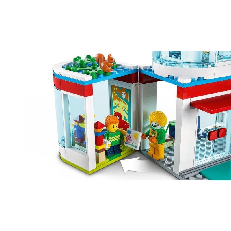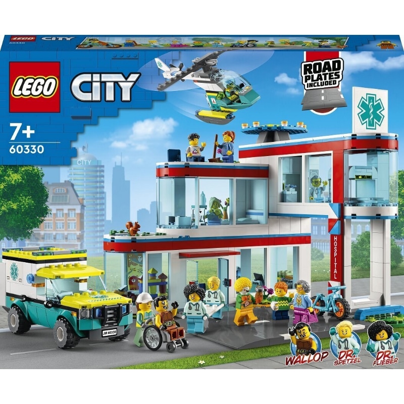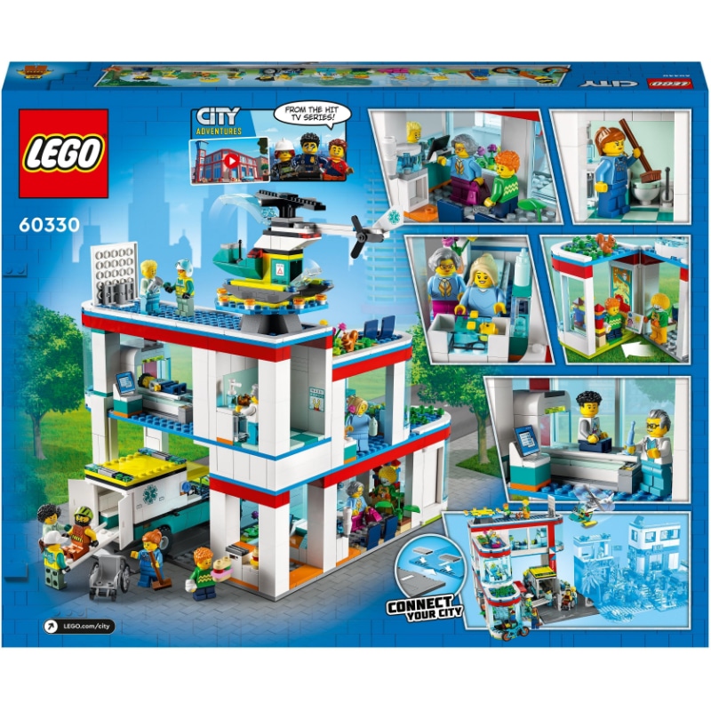 LEGO® City Sairaala (60330) on lelusetti täynnä mielikuvitusleikkeihin innostavia yksityiskohtia, kuten vastaanottotila ja lasten leikkihuone, vastasyntyneiden osasto, WC ja MRI-kuvaushuone. Setissä on myös ambulanssi ja pelastushelikopteri sekä tierakennuslevyt, joilla sen voi yhdistää muihin LEGO setteihin, sekä 12 minihahmoa, joista 4 on tuttuja LEGO City Adventures tv-sarjasta.
