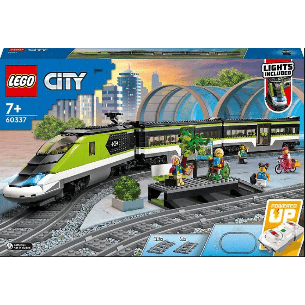 LEGO® City Pikajuna (60337) setti sisältää kauko-ohjattavan luotijunan veturin, jossa on toimivat, himmennettävät ajovalot ja LEGO Powered Up moottori. Mukana myös ravintolavaunu, matkustajavaunu, asemalaituri, 24 raideosaa ja 6 minihahmoa, jotka takaavat junaleikit tuntikausiksi.