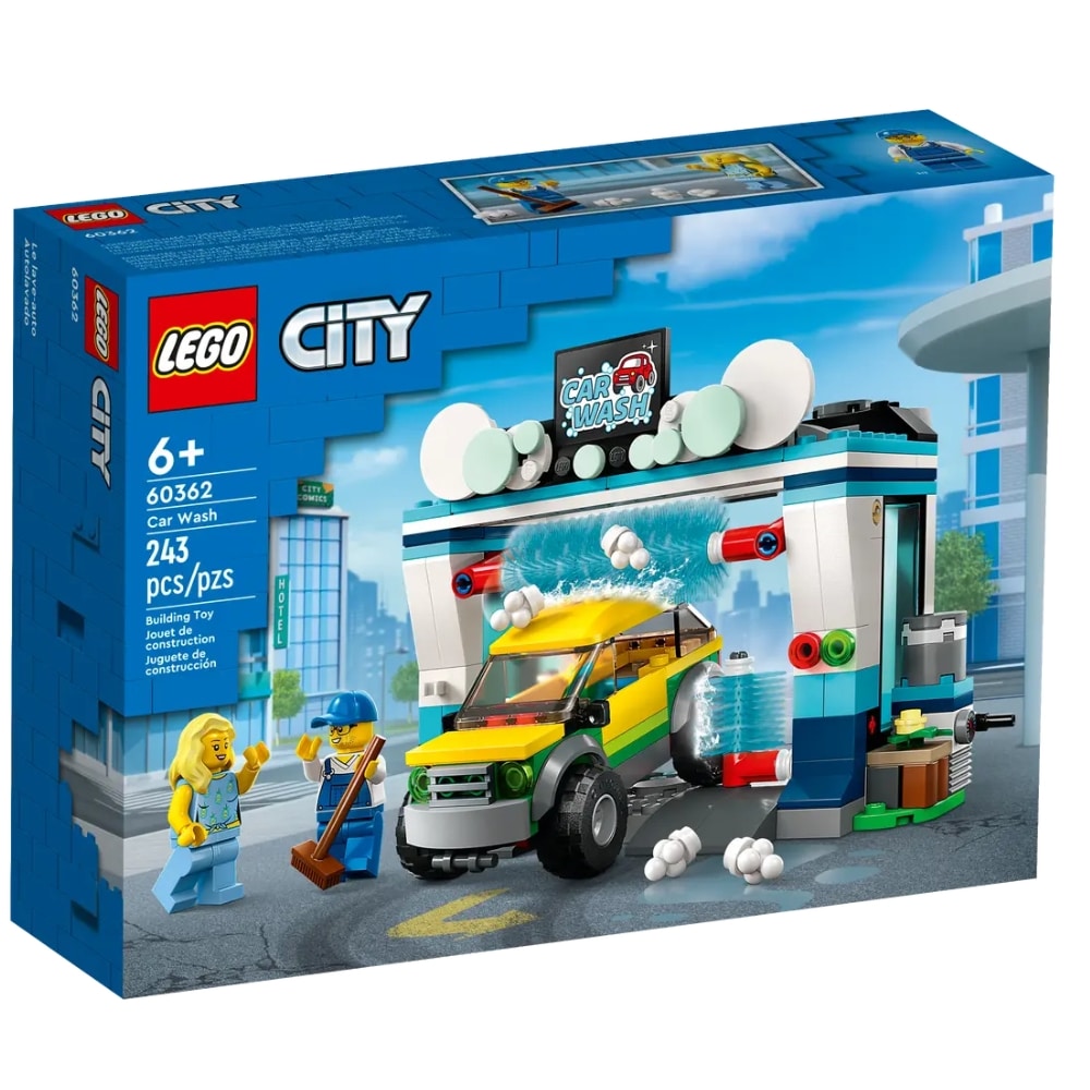 LEGO City 60362 Autopesula – Autojen peseminen käy kuin leikki yli 6-vuotiaille tarkoitetulla LEGO® City Autopesula (60362) setillä, johon kuuluu pyörivät pesuharjat, liikuteltavat kuivurit, saippuavaahdon annostelija, rengaspainepumppu ja leikkiauto. Lisää vain kuljettajan ja työntekijän minihahmot ja hieman mielikuvitusta, niin leikit jatkuvat tuntikausia.