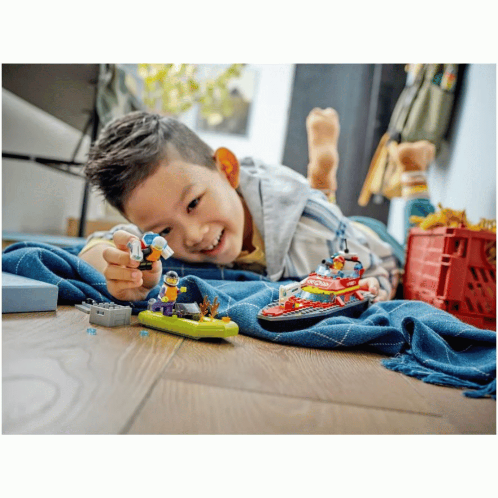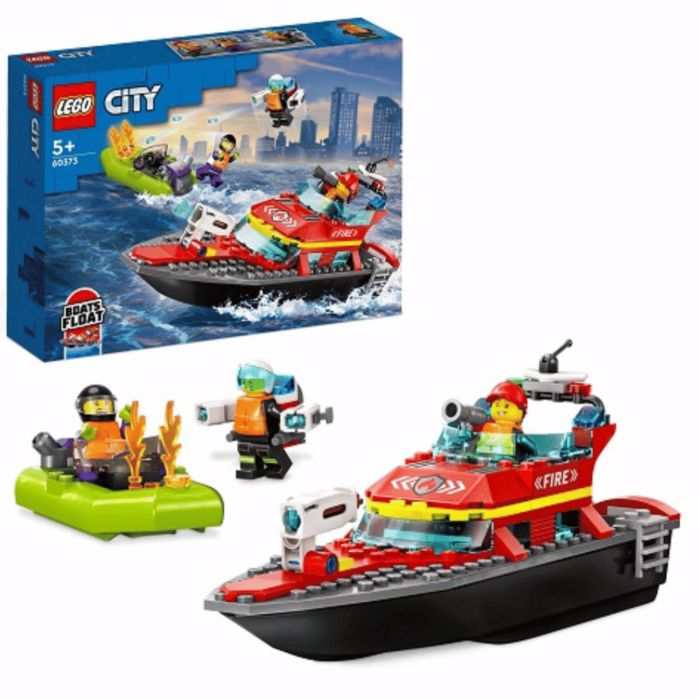 LEGO City 60373 palokunnan pelastusvene setti innostaa jännittäviin sammutus‑ ja pelastusseikkailuihin. Setti sisältää hienon pelastusveneen ja pienen kumiveneen. Lapset voivat taltuttaa LEGO liekit laukaisemalla LEGO vesipalikoita veneen sammuttimella. Apuna on myös palomies rakettireppuineen. Nappaa mukaan settiin sisältyvät 3 minihahmoa, niin hupihetket voivat alkaa.