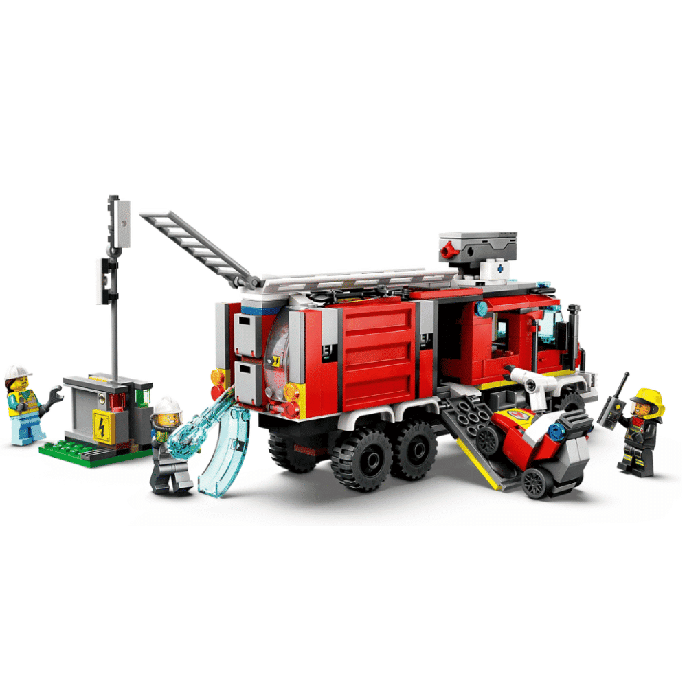 LEGO City 60374 palokunnan johtoauto antaa uutta kipinää lasten palokuntaleikkeihin. Monipuolisessa paloautossa on irrotettava komentokeskus, palokunnan drone ja maassa liikkuva robotti. Lapset voivat taltuttaa liekit laukaisemalla erilaisia, vettä ja vaahtoa esittäviä osia paloauton sammuttimella ja dronella. Ota leikkeihin mukaan metsä‑ ja kaupunkirakennelmat sekä 3 minihahmoa, niin voit uppoutua jännittäviin palokuntaleikkeihin tuntikausiksi!