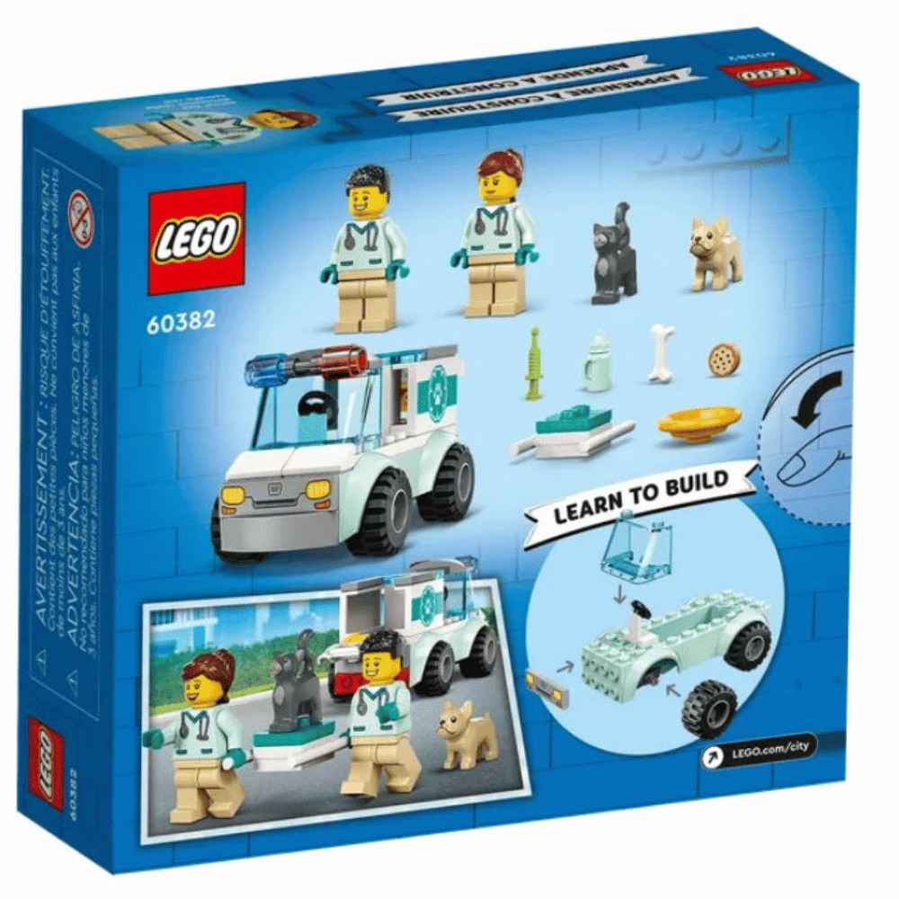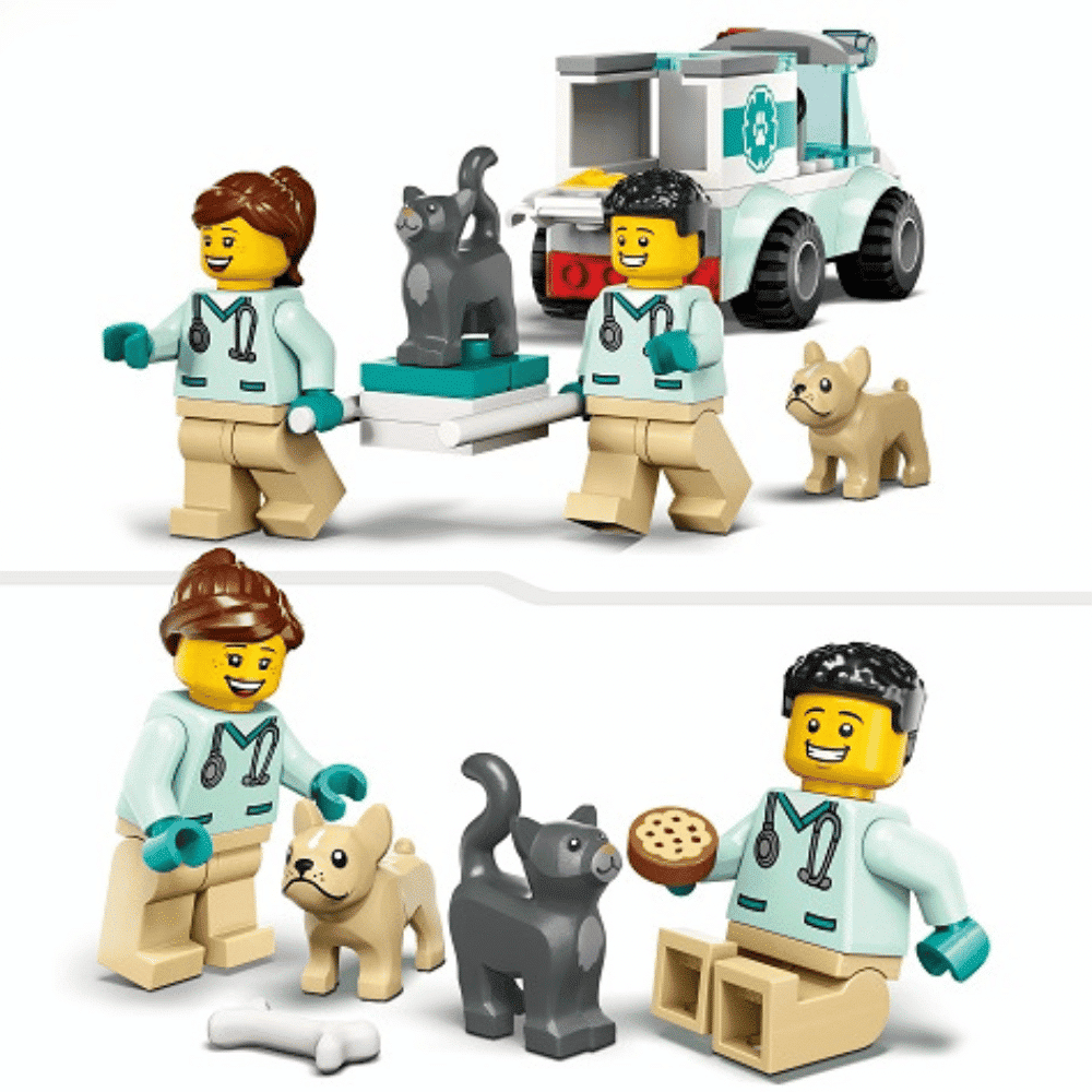 Pienet eläinlääkärit ja eläinten ystävät ihastuvat 4 vuotta täyttäneille sopivaan LEGO City 60382 eläinpelastusauto rakennussettiin takuuvarmasti. Mukana on pelastuspartion ajoneuvo ja irrotettavat paarit, 2 eläinlääkärin minihahmoa, koiran ja kissan hahmot sekä hauskoja tarvikkeita tuntikausien hoiva‑ ja mielikuvitusleikkeihin.
