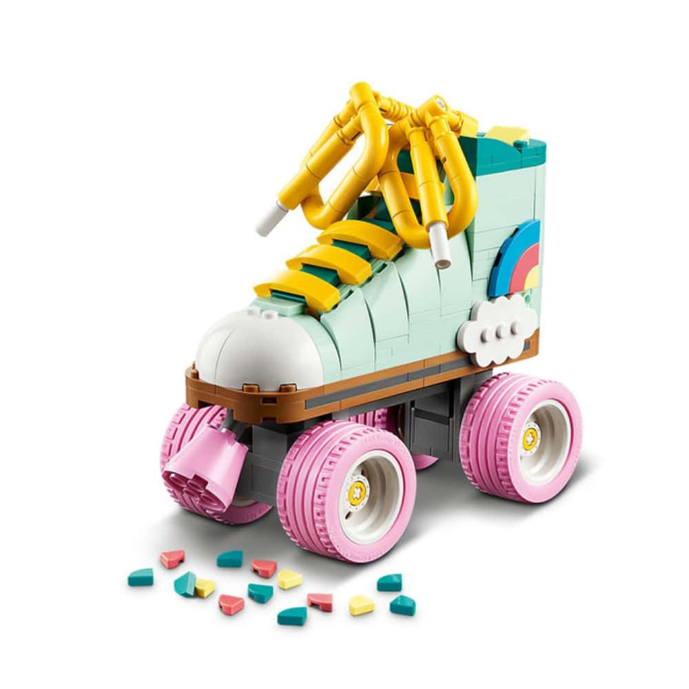 Värikäs LEGO® Creator Retrorullaluistin (31148) rakennussetti vie yli 8-vuotiaat luovat lapset aikamatkalle. Setistä rakentuu LEGO rullaluistin, joissa on 4 pinkkiä pyörää, pinkki jarru ja paksut keltaiset nauhat. Mukana on myös koko joukko värikkäitä osia, joilla lapset voivat koristella rullaluistimen ikiomaan tyyliin.
