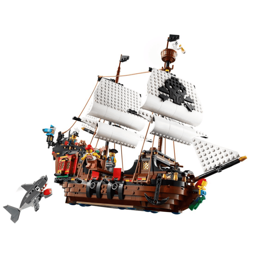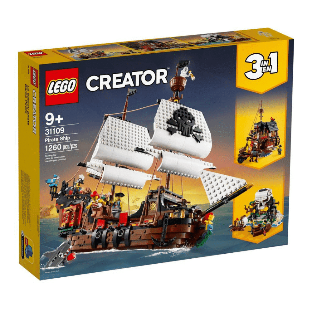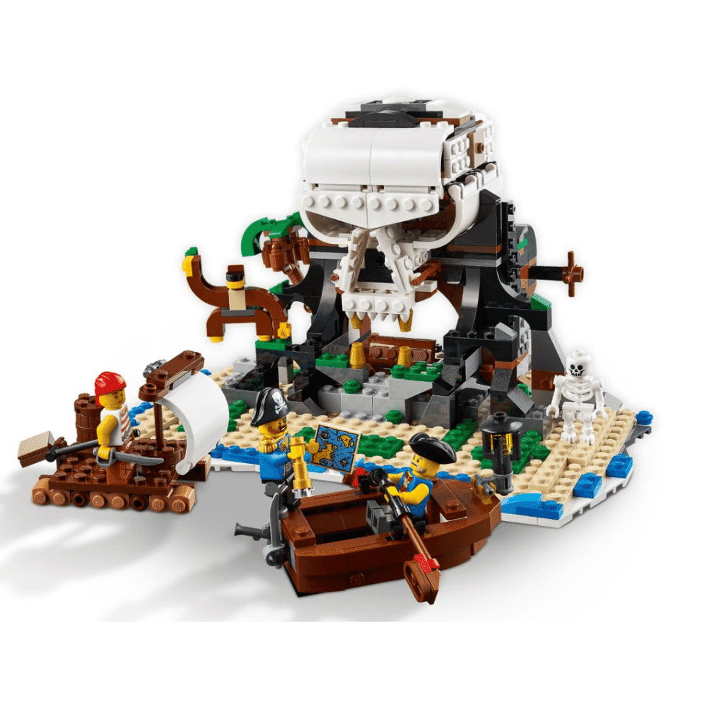 Upea LEGO Creator 3-in-1 setti sisältää vähintään kolme vaihtoehtoista mallia rakennettavaksi ja leikkeihin. Lapset voivat rakentaa merirosvolaivan, muuntaa sen merirosvojen majataloksi tai aavemaiseksi Pääkallosaareksi. Tai kun luovuus nousee lentoon, osista voi rakentaa jotain täysin uutta.