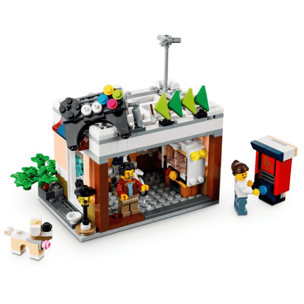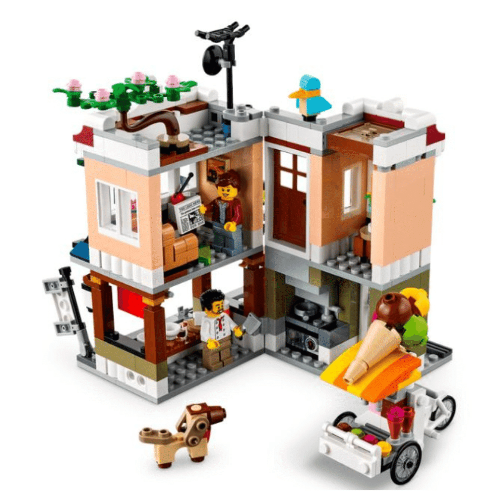 LEGO Creator 3in1-rakennussarjasta voi rakentaa 3 erilaista taloa. Lapset voivat ensin viimeistellä 2-kerroksisen kaupunkitalon, jossa on nuudelikahvila, asunto ja kattoterassi, muuntaa sen sitten pyöräliikkeeksi, jossa on lehtikioski ja taiteilijan työhuone tai pelisaliksi, joka on varustettu 3 pelikoneella. Ja 569 palikasta voi tietenkin rakentaa myös jotain aivan muuta.
