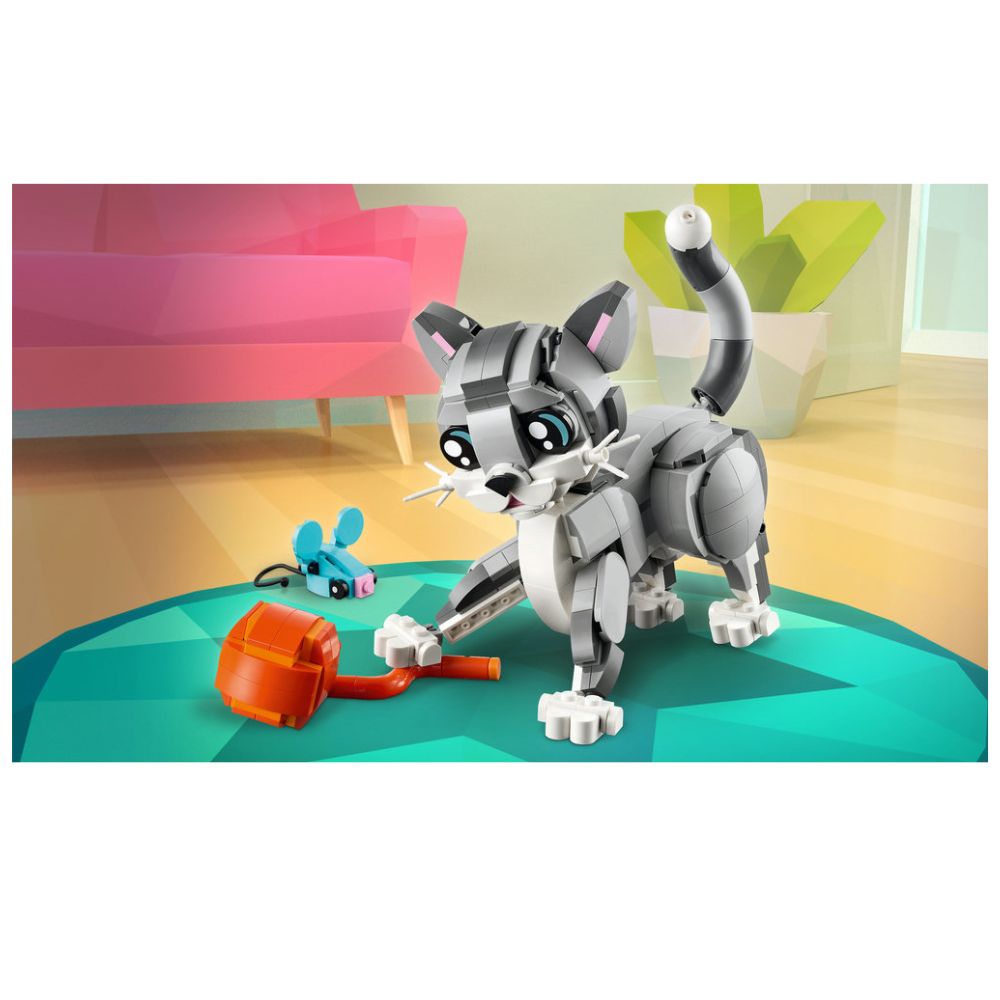 Hurmaava LEGO Creator 3in1 Leikkisä kissa rakennussetti on loistojuttu lemmikkifaneille. Eläinaiheisesta setistä rakentuu söpö kissa, jonka pään, hännän, korvat ja jalat voi asetella eri asentoihin. Veijarilla on tarvikkeinaan ruokakuppi, leluhiiri ja lankakerä, jotka innostavat lapset hauskoihin tarinoihin.