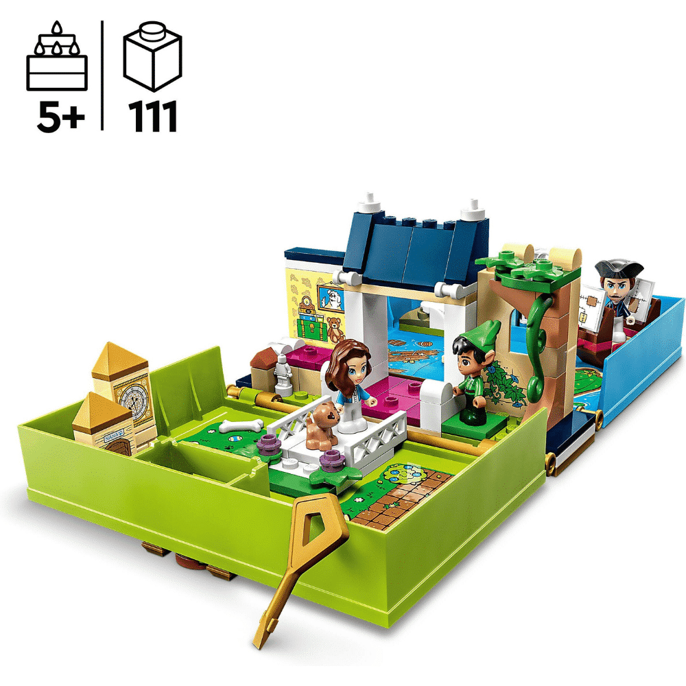 Lasten leikit pääsevät vauhtiin heti, sillä setissä on 3 LEGO mikronukkehahmoa: Disneyn Peter Pan, Leena ja kapteeni Koukku sekä LEGO koirahahmo Nana. Kirja tutustuttaa lapset uuteen suosikkileffaan.