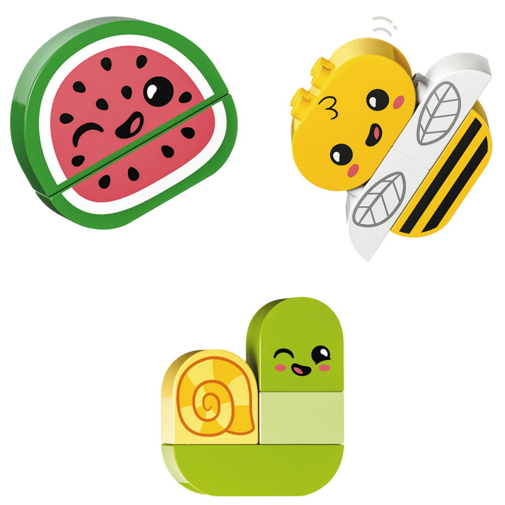 LEGO DUPLO Ensimmäinen setit sisältävät loputtomasti mahdollisuuksia mielikuvitusleikkeihin ja leikin kautta oppimiseen. Setin parissa leikki-ikäiset lapset oppivat kasvien ja hedelmien kasvusta, ja värikkäät pinottavat osat kehittävät lasten hienomotorisia taitoja. Kasvien söpöt kasvot innoittavat itseilmaisuun ja opettavat ymmärtämään erilaisuutta. Söpöjä ruokaosia sisältävä setti sopii mainiosti loputtomiin mielikuvitusleikkeihin.