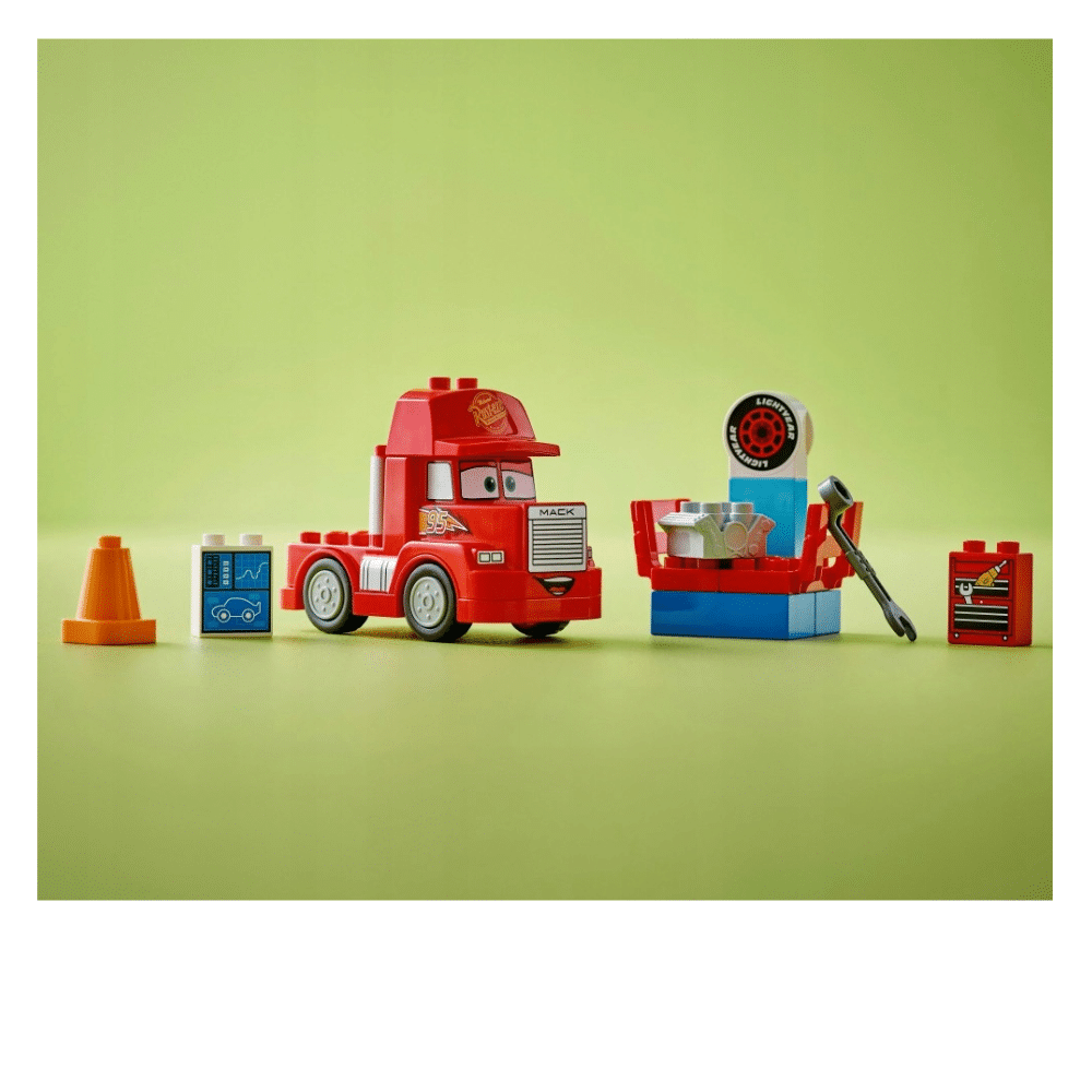 Make kilpailuissa ‑setti (10417) innostaa yli 2-vuotiaat ajoneuvojen ystävät korkeaoktaanisiin hupihetkiin. Rakenteluun ja leikkeihin sopivan lelun inspiraation lähteenä on Disneyn ja Pixarin Autot-elokuvista tuttu punainen kuorma-auto.