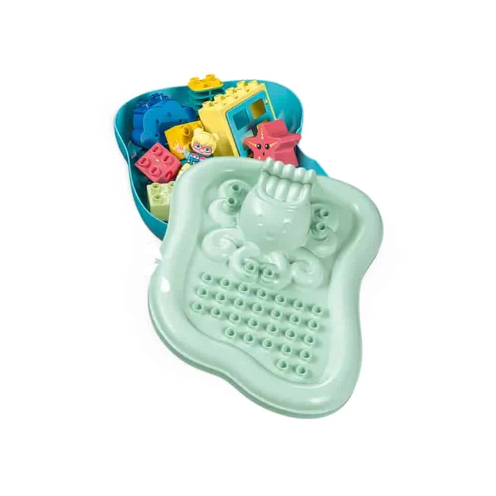 LEGO DUPLO kylpylelut ovat opetusleluja, jotka on suunniteltu niin, että aikuiset ja lapset voivat yhdessä pitää hauskaa ja ihmetellä uusia asioita. Kylpyhetken päätyttyä kelluva rengas avautuu, joten se on helppo kuivata. Tämä lelu on helppo pitää hygieenisen puhtaana.