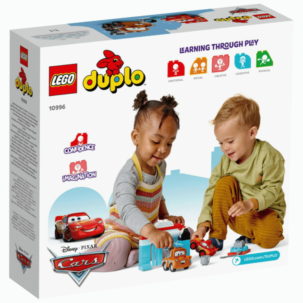 Lapset voivat rakentaa liikuteltavan Salama McQueenin ja Martin sekä autopesularakennelman yhdessä. Pienille käsille sopivat LEGO DUPLO rakennuslelut kehittävät hienomotorisia taitoja. Setti sisältää pesuharjan ja pyörivän korjauspöydän jakoavaimineen lasten korjausleikkeihin. Napsauta Salama McQueen Martin vetokoukkuun ja hinaa menopeli huoltoon. Lapset voivat keksiä ikiomia tarinoita suosituista elokuvista tuttujen hahmojen kanssa.