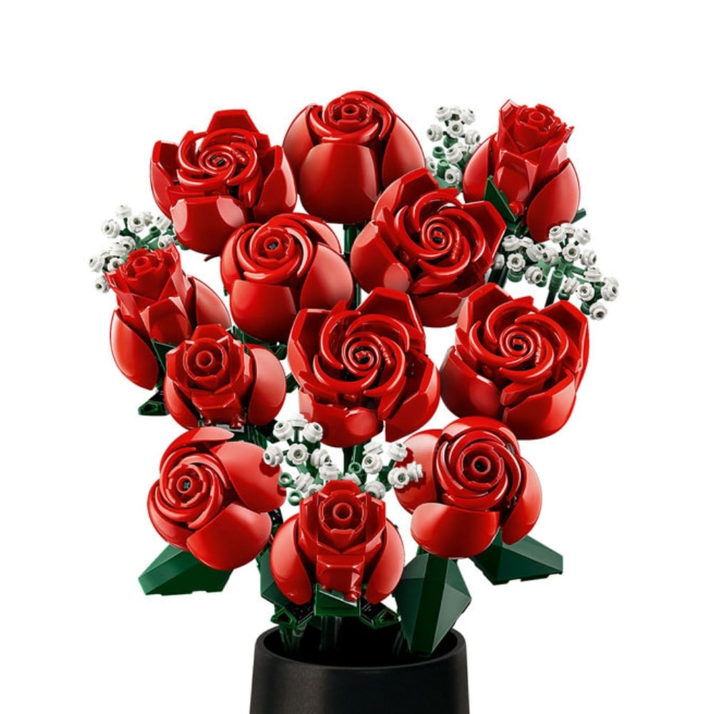 Tämä LEGO kukkakimppu on ilo rakentaa! Osista rakentuu tusina punaisia ruusuja, joista 4 on täydessä kukassa, 4 puhkeamassa kukkaan ja 4 vielä nupullaan. Kukkien vihreät pitkät varret voi sujauttaa maljakkoon. Mukana on myös 4 morsiusharson oksaa pienine valkoisine kukintoineen. Helposti rakennettava kukkakimppu on tyylikäs koriste tilaan kuin tilaan, ja sen voi yhdistää muihin LEGO Botanical Collection tuotesarjan setteihin.
