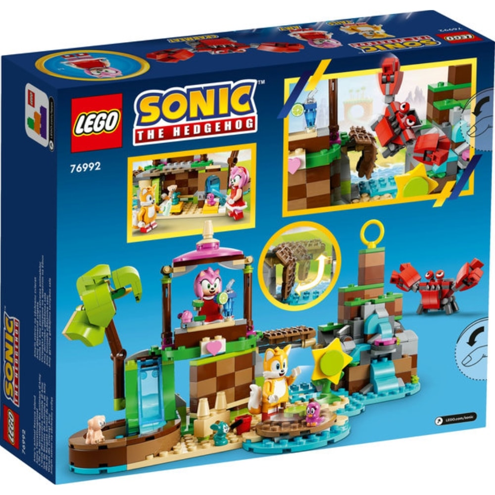 LEGO Sonic the Hedgehog™ Amyn pelastettujen eläinten saari 76992 lelusetti on iloinen yllätys yli 7-vuotiaille lapsille, jotka pitävät Sonicista ja eläinten hoitamisesta. Luoviin leikkeihin on helppo uppoutua lasten tutkiessa saarta ja auttaessa Amya ja Tailsia pitämään huolta eläinystävistään. Hupihetkiä on luvassa, kun hahmot laskevat liukumäkeä pitkin uima-altaaseen, rakentavat hiekkalinnoja ja hyppäävät karusellin kyytiin. 7+