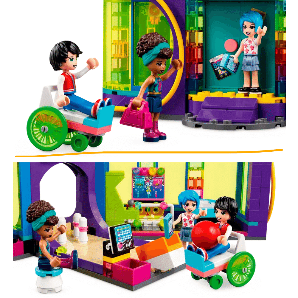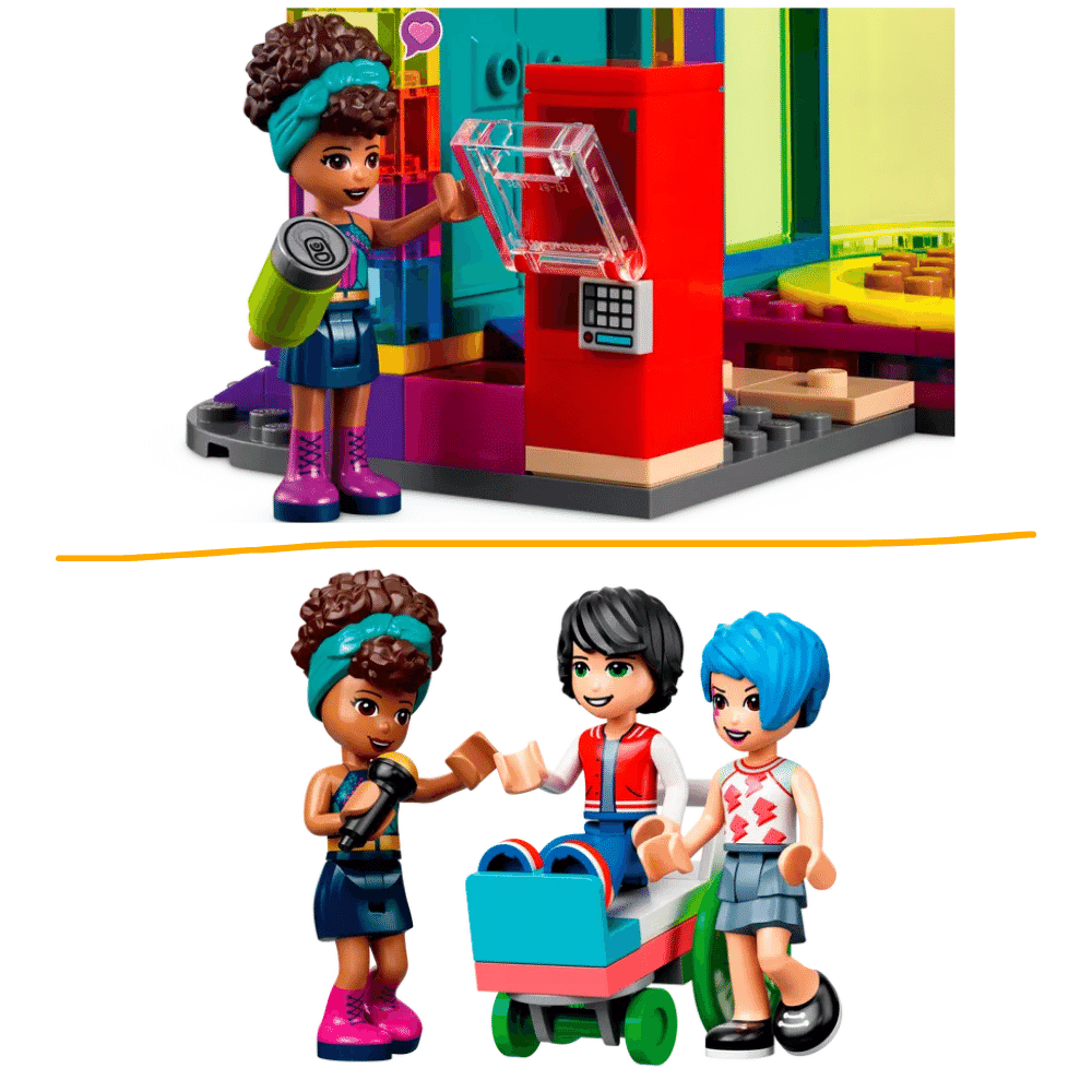 Yli 7-vuotiaille LEGO® Friends faneille on luvassa tuntikausiksi hauskoja leikkejä mahtavan Rullaluistindiskon (41708) parissa. Rakennelma avautuu paljastaen 3 hauskaa harrastustilaa täynnä tekemistä. LEGO Friends Andrea sujauttaa luistimet jalkaan ja kiitää ystäviensä kanssa rullaluistindiskoon. Sieltä hahmot jatkavat keilaradalle ja pelihalliin. Mukana on 3 LEGO Friends hahmoa ja paljon hauskoja tarvikkeita, joten mahdollisuudet ystävyyden luoviin tarinoihin ovat loputtomat.