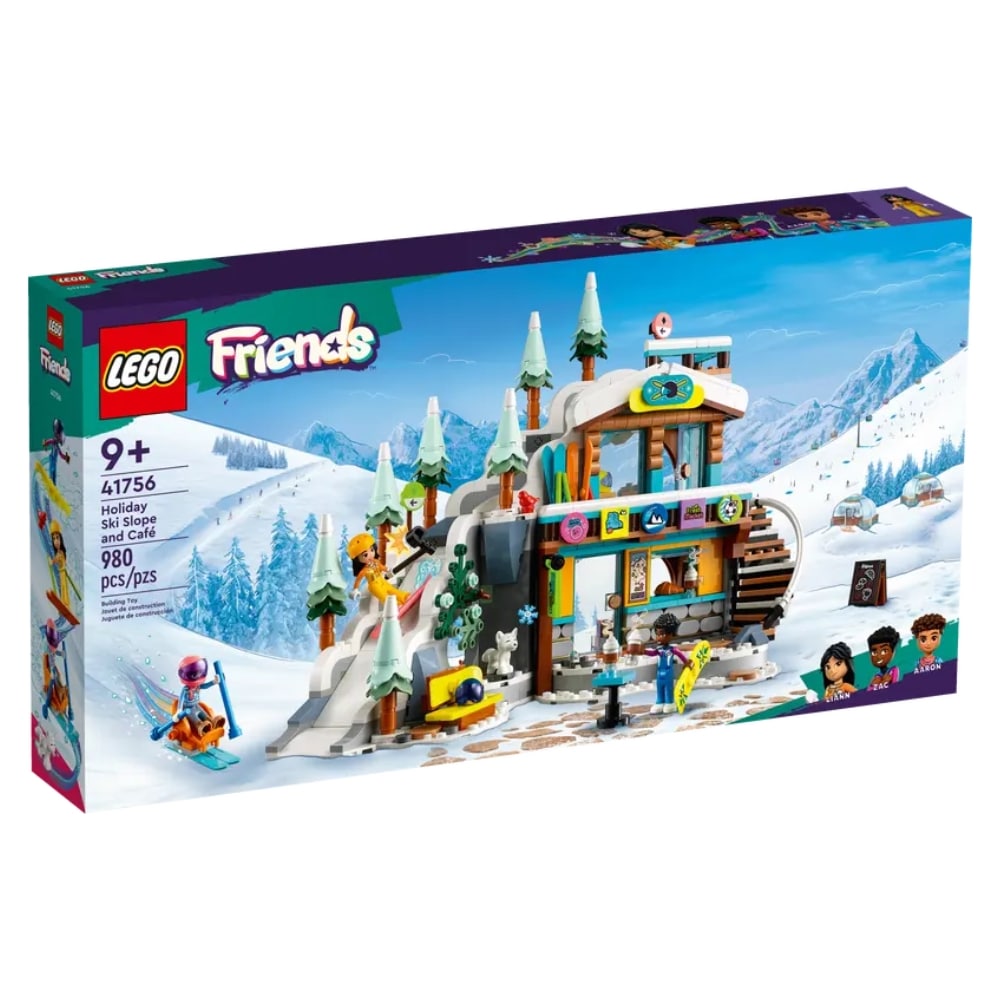 Lumileikeistä pitävät lapset 8-vuotiaasta alkaen ihastuvat LEGO® Friends Laskettelukeskus ja rinnekahvila (41756) lelusettiin. Kun vuoristomaisema, jossa on laskettelurinne, rinnekauppa ja -kahvila, on rakennettu valmiiksi, lapset voivat pitää hauskaa etsimällä Liannin, Zacin ja Aronin minihahmoille sopivat lumilaudat, sukset ja kypärät. Hahmot kiitävät alas laskettelurinnettä ja herkuttelevat sitten kaakaolla kahvilassa. Setissä on myös salainen luola, ja leikit lumisissa maisemissa saavat uutta puhtia naalin seurassa.