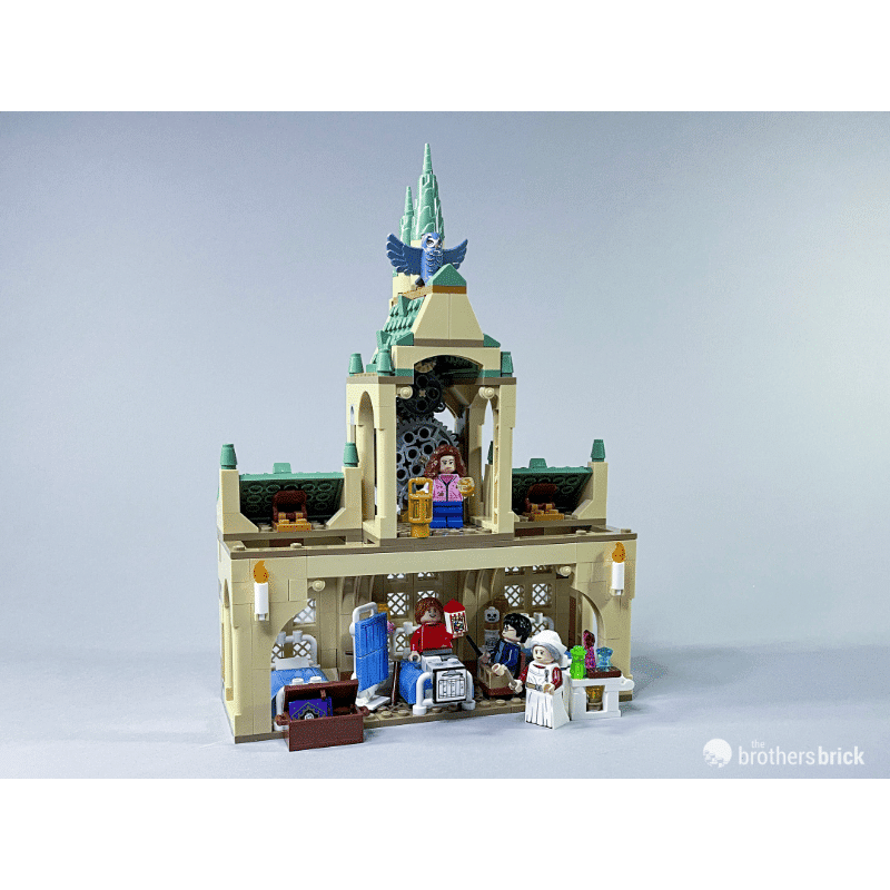 Nuoret noidat ja velhot voivat liittyä Harry Potterin, Ron Weasleyn™ ja Hermione Grangerin™ joukon jatkoksi monipuolisen leikkisetin pyörteissä uppoutuen Harry Potter ja Azkabanin vanki ‑elokuvasta tuttuihin tarinoihin. Tylypahkan sairaalasiivessä on 3 sänkyä ja sermi sekä matami Poppy Pomfrey työntämässä taikajuomilla ja karkeilla lastattua kärryään. Ron lepää sängyllä jalka paketissa, ja käden ulottuvilla on pullollinen kuvottavaa Luuran-Kokoa. Harry ja Hermione ovat sillä välin kavunneet kellotornin huipulle Ajankääntäjän pariin. Kun tornia kääntää, kellon viisarit pyörivät ajassa taaksepäin kohti seuraavaa taianomaista seikkailua! Setin ylä‑ ja alaosat voi irrottaa, ja niiden väliin voi yhdistää ja pinota sarjan muita moduuleja. Käsissäsi on tuota pikaakoko Tylypahkan linna!