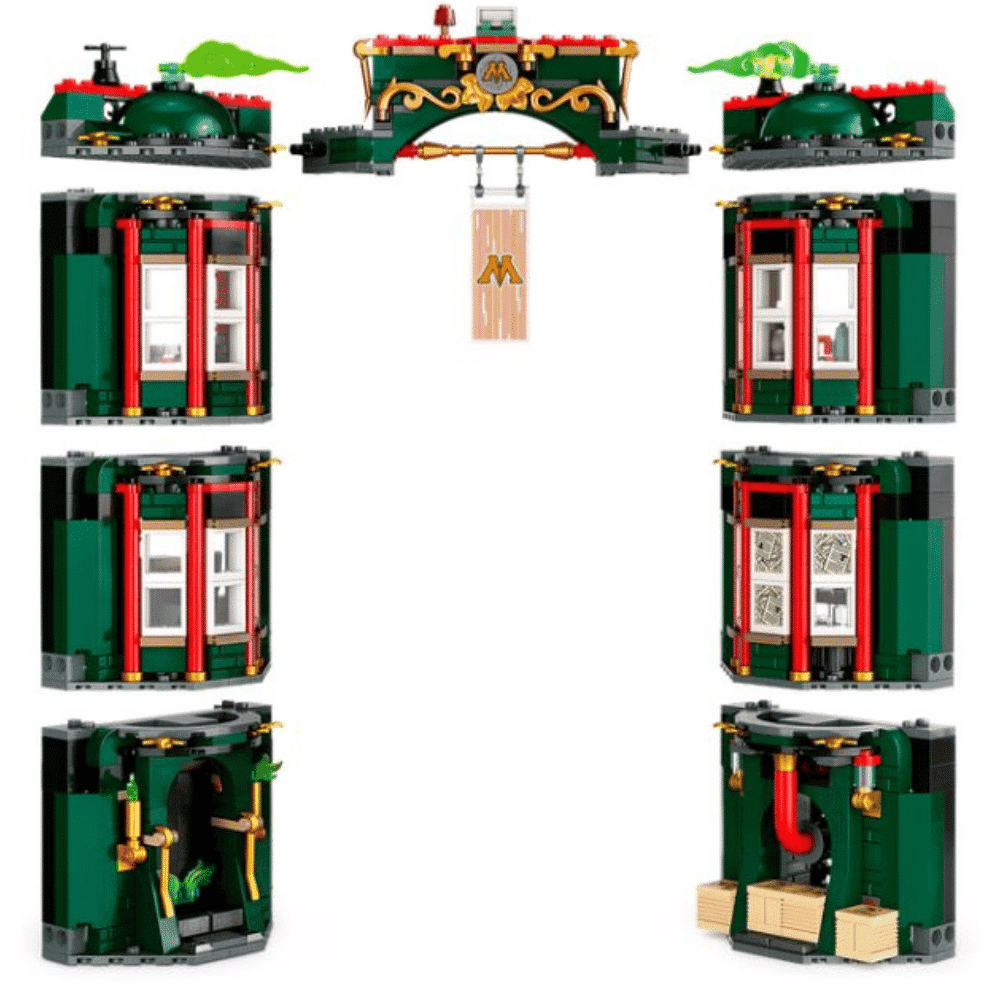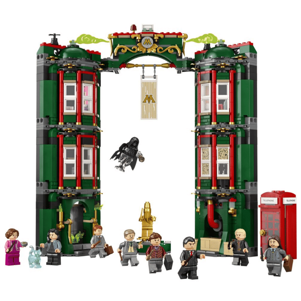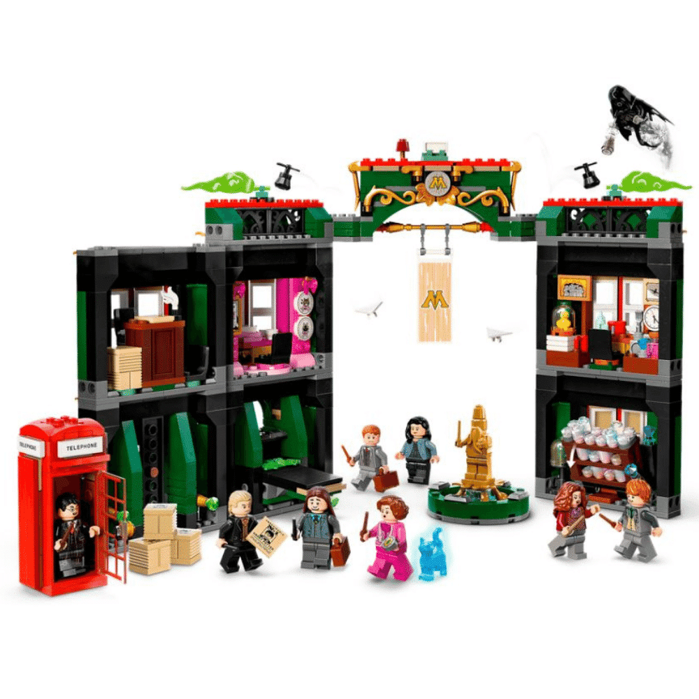 Tämän setin parissa lapset voivat uppoutua Taikaministeriön lukuisiin tarinoihin kerros kerrokselta. Mukana on tuttuja hahmoja, kuten Harry Potter, Hermione Granger™ ja Ron Weasley™ – jotka muuttuvat taianomaisesti päätä kääntämällä ja uusien hiusten voimin Albert Pyryjyväksi, Mafalda Hopkirkiksi ja Reg Kissimyyriksi. Rakennelman julkisivun takaa löytyy lukuisia yksityiskohtia: Dolores Pimennon toimisto, Arthur Weasleyn toimisto, Ennustussali ja oikeussali. Hahmojen on löydettävä Luihuisen medaljonki ja päästävä pakoon ennen kuin Yaxley, Pius ja Ankeuttaja saavat ystävykset kiinni! Ilmaisen LEGO Building Instructions sovelluksen toiminnoilla lapset voivat zoomata ja kiertää mallia rakentelun aikana, joten Taikaministeriön voi rakentaa helposti aina eri tavalla loputtomiin seikkailuihin.