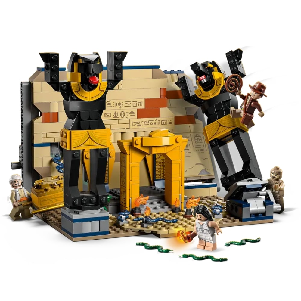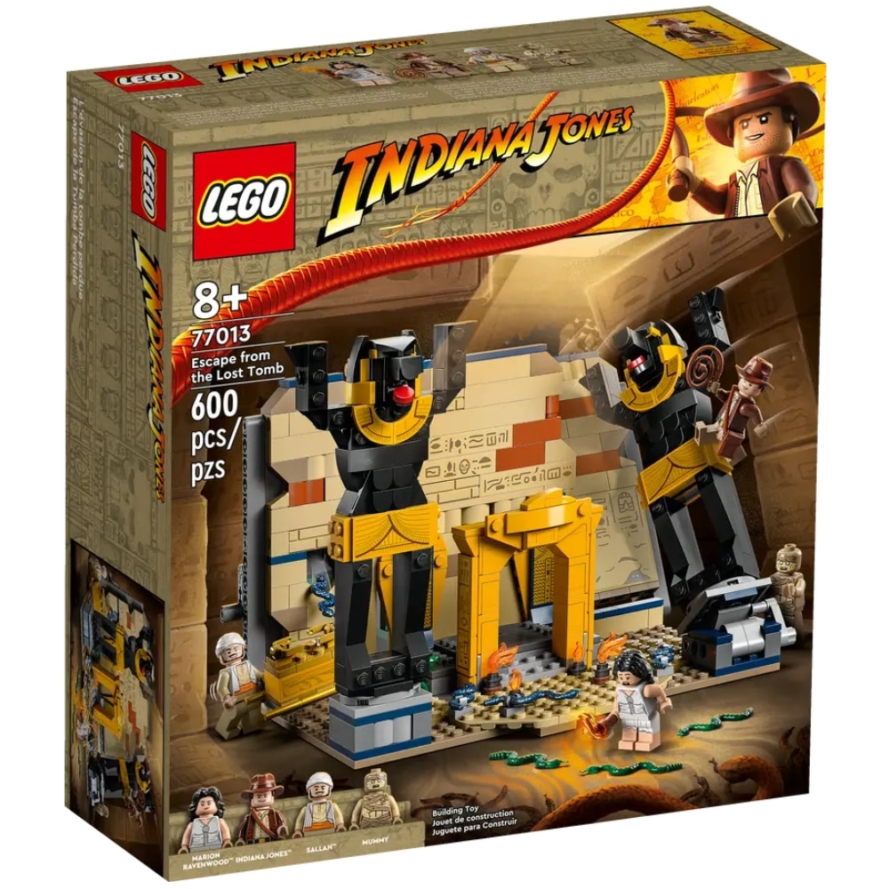 LEGO Indiana Jones 77013 Pako kadonneesta haudasta rakennussetin parissa lapset voivat uppoutua Kadonneen aarteen metsästäjät ‑elokuvasta tuttuihin jännittäviin tarinoihin. Yli 8-vuotiaille sopiva setti sisältää temppelirakennelman, 2 patsasta, salakäytävän, muumiohahmon sekä maassa kieriskeleviä ja seinien läpi kiemurtelevia käärmeitä.