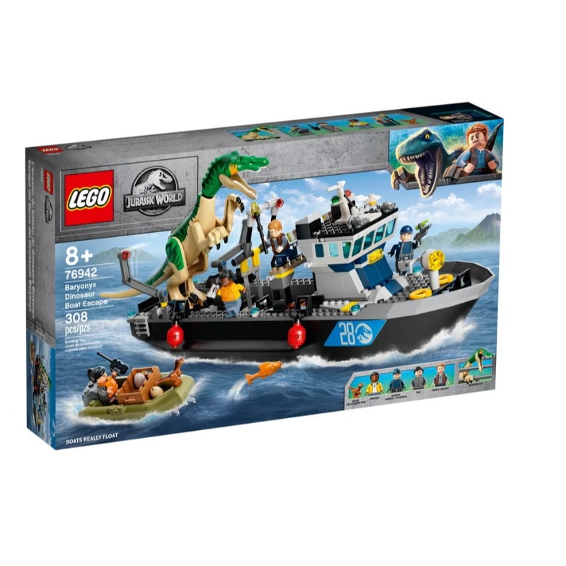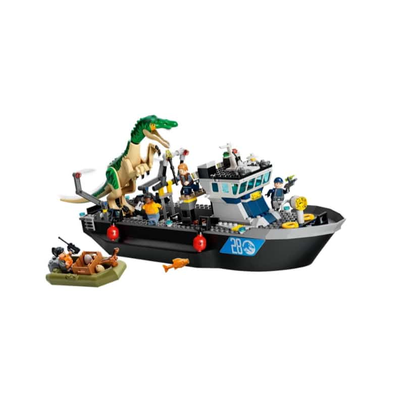 Lapset voivat viedä LEGO® Jurassic World toimintaleikit vesille tämän Baryonyx-dinosauruksen pako laivalla (76942) lelusetin avulla. Kaikkien aikojen ensimmäinen LEGO Jurassic World setti, jossa on veneitä. Setin palikoista voi rakentaa laivan, joka kelluu – myös silloin, kun eri asentoihin asetettava Baryonyx-dinosaurushahmo on kyydissä. Laivassa on dinosaurushäkki, pyörivä ”valonheitin” ja irrotettava ohjaamo, jonka takaa pääsee ruumaan.