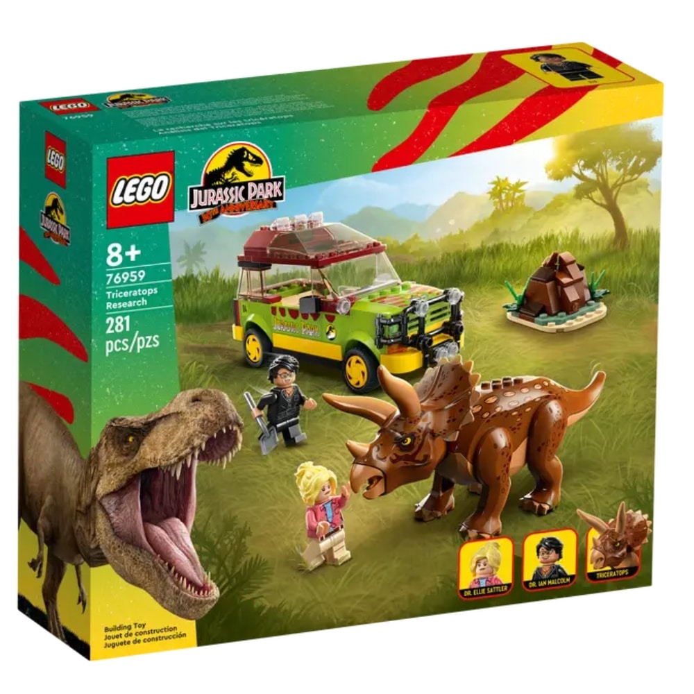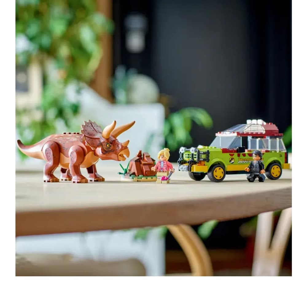 Tämä LEGO Jurassic Park 76959 Triceratopsia tutkimassa keräilysetti saa dinosauruksista ja upeista autoista pitävät lapset taatusti ihastumaan. Yli 8-vuotiaille sopiva setti sisältää aidon yksityiskohtaisen, navigointijärjestelmällä varustetun Jurassic Park Ford Explorerin, jossa on tilaa 2 minihahmolle – tohtori Ellie Sattlerille ja Ian Malcolmille. Mukana myös taivuteltava Triceratops-hahmo, kasa dinokikkareita myrkkymarjaosineen sekä lapio, joten lapset voivat uppoutua Jurassic Park ‑elokuvan eeppiseen kohtaukseen.